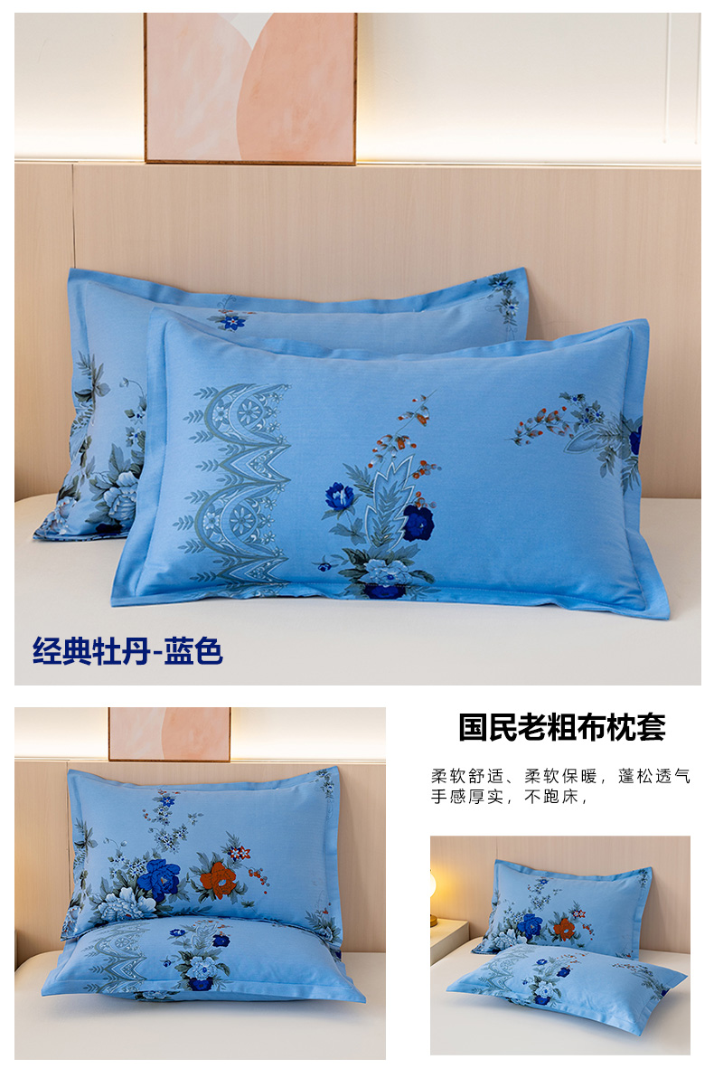 商品名称:居美良品2025新款国民老式床单经典牡丹配套枕套 经典牡丹-蓝色