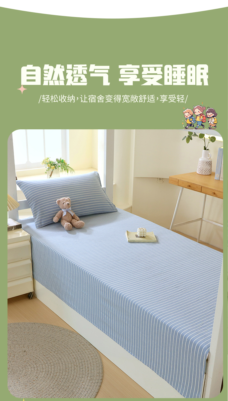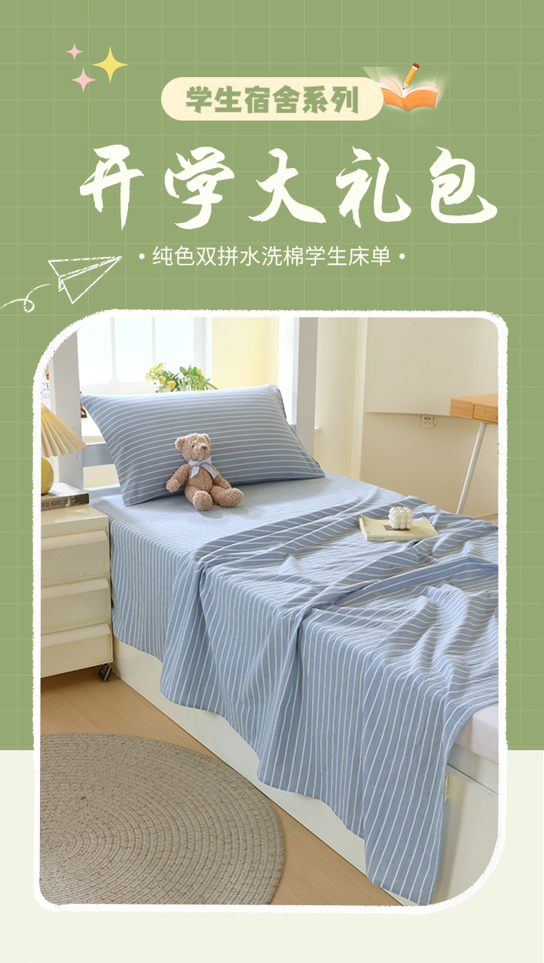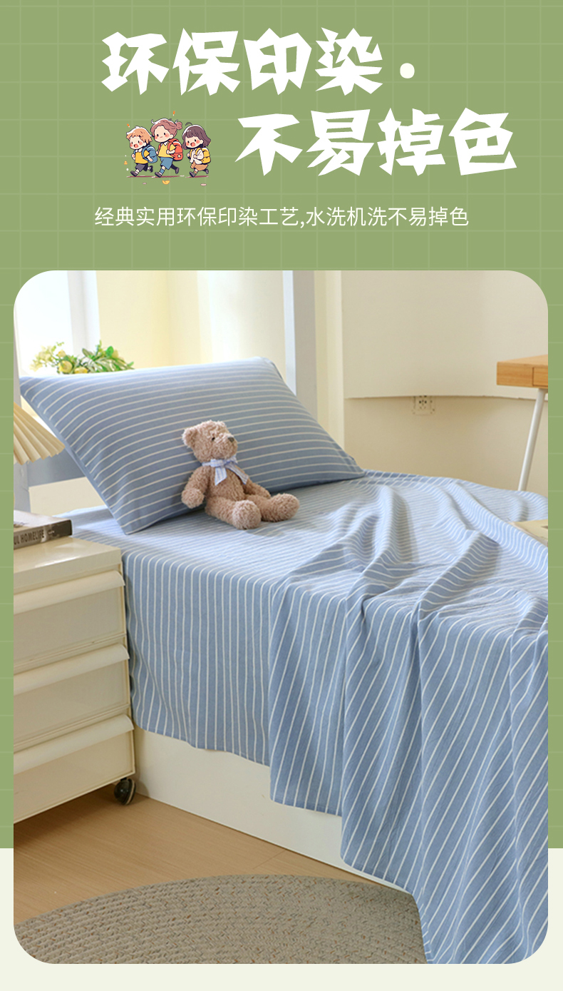 商品名称:春皖家纺 2025新款学生季全棉纯棉色织AB版水洗棉单品系列-单床单 床单单件 素雅-蓝条