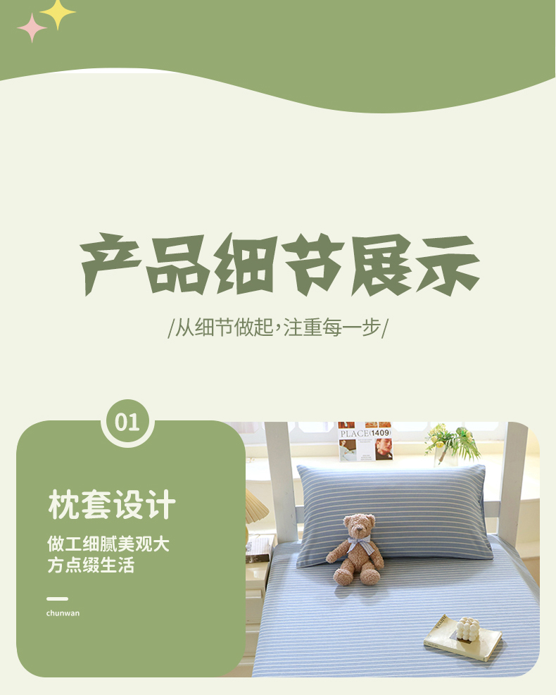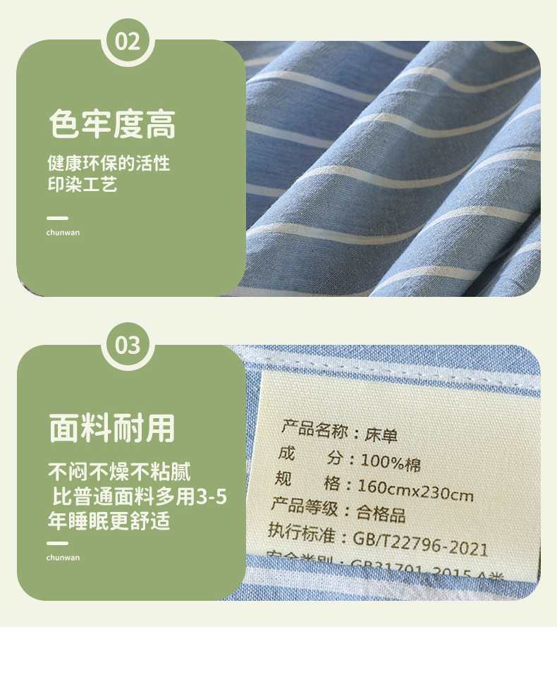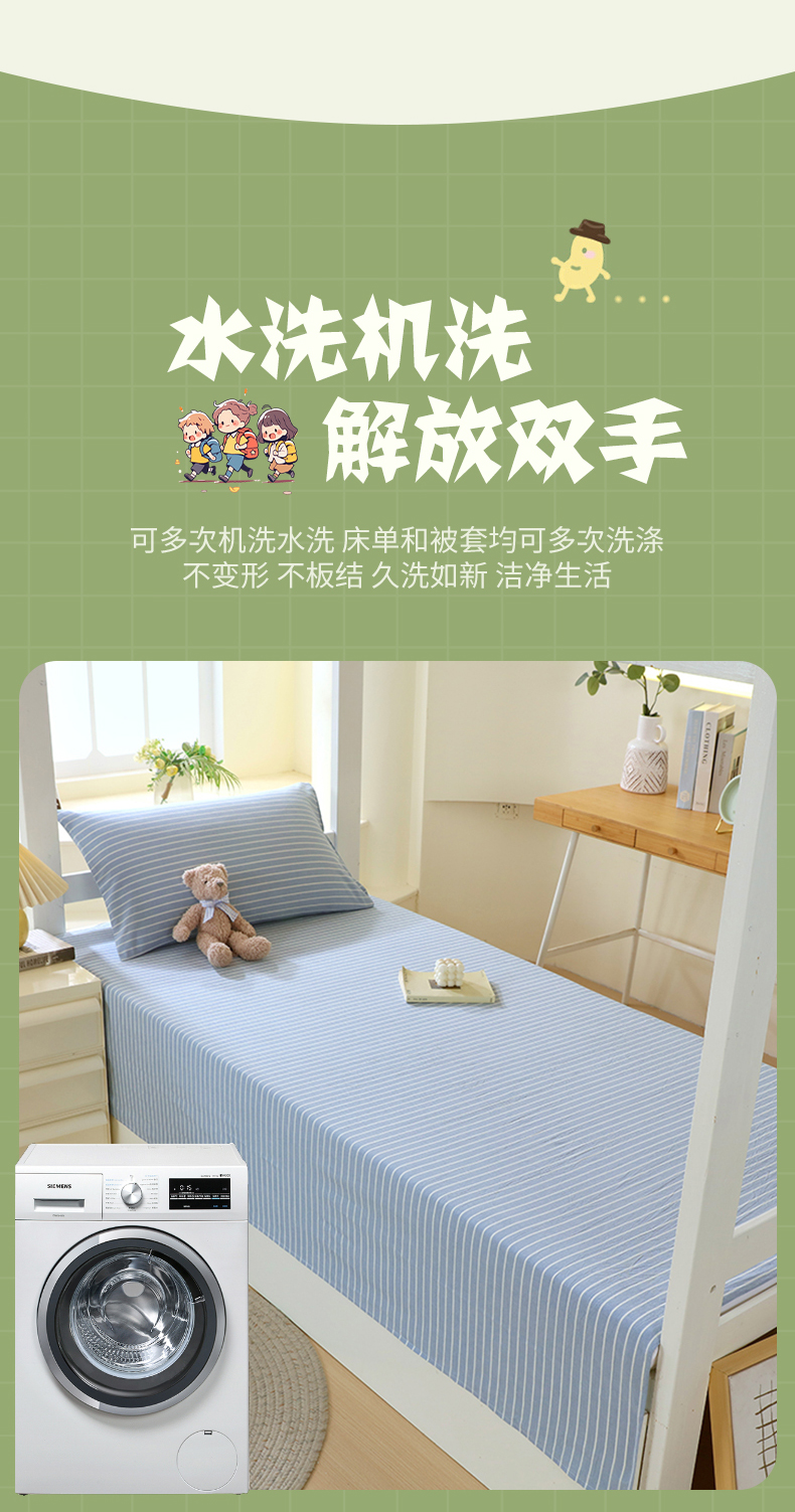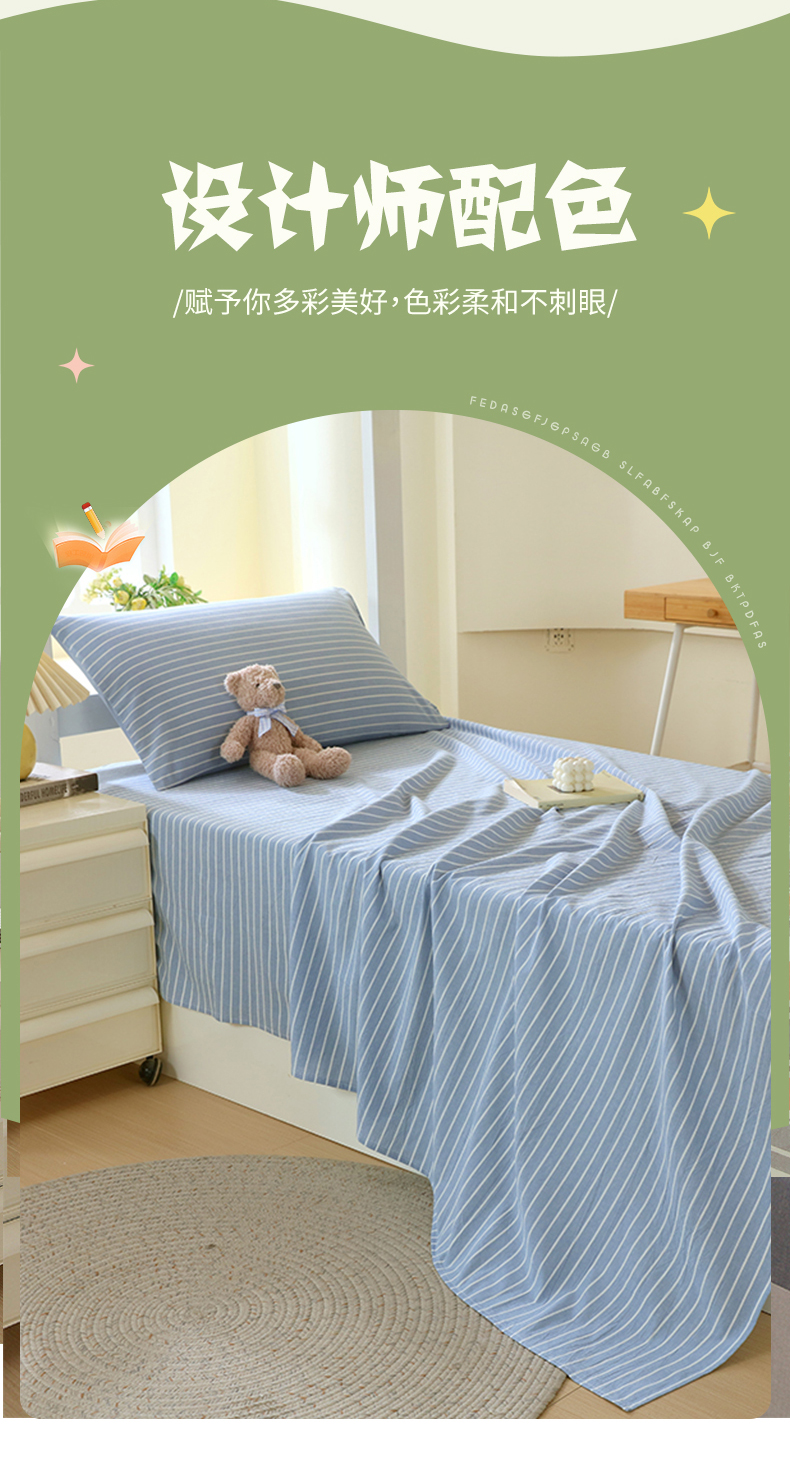 商品名称:春皖家纺 2025新款学生季全棉纯棉色织AB版水洗棉单品系列-单床单 床单单件 素雅-蓝条
