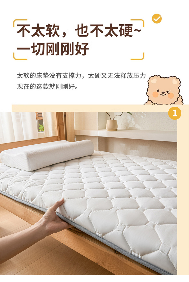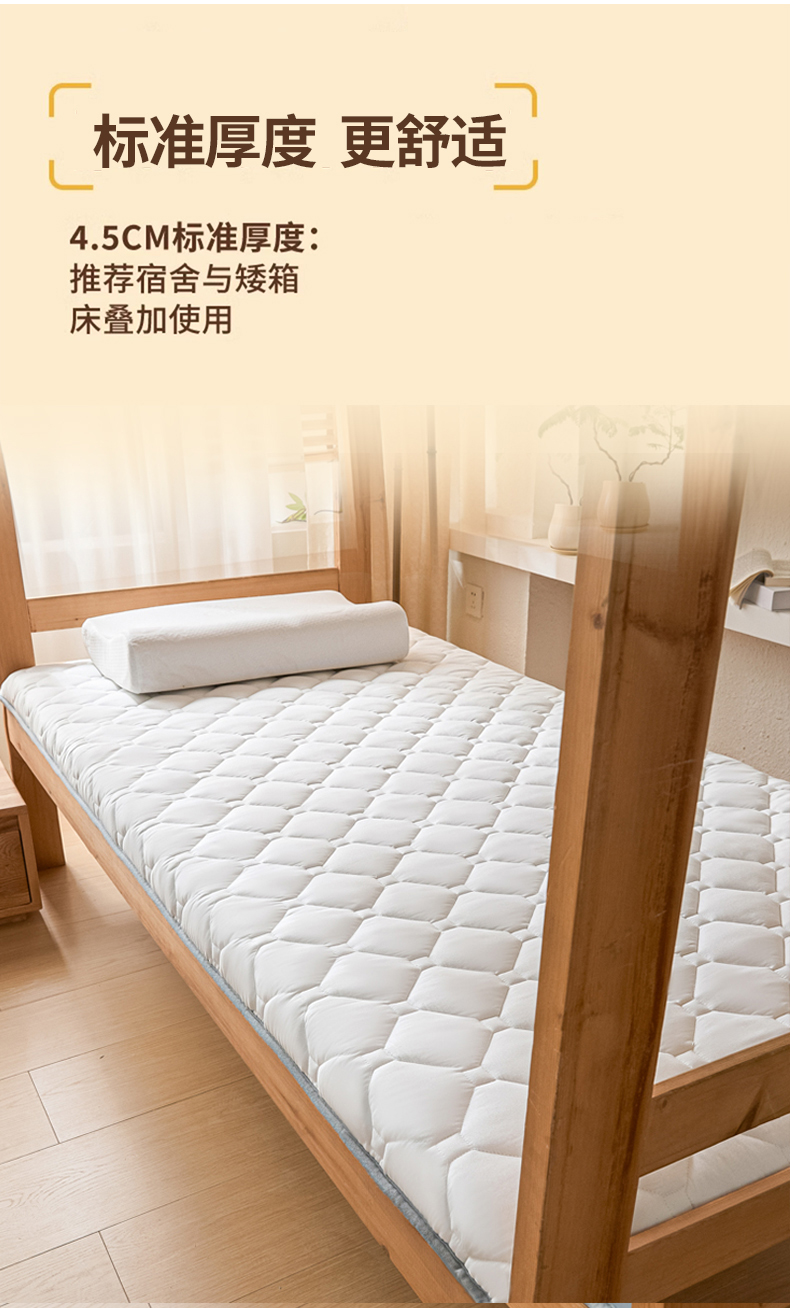 • 91家纺网 家纺一手货源 找家纺 暖季家纺 2025新款磨毛印花亲肤学生床垫 面包格象牙白