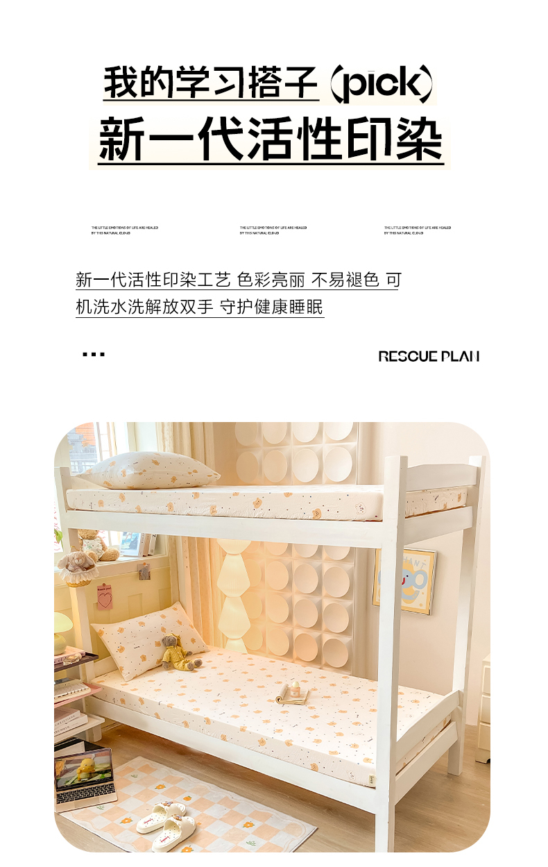• 91家纺网 家纺一手货源 找家纺 眠势力 2025新款ins云感双层纱学生宿舍上下铺奶油风云感四季款单床笠床笠单件 点点草莓