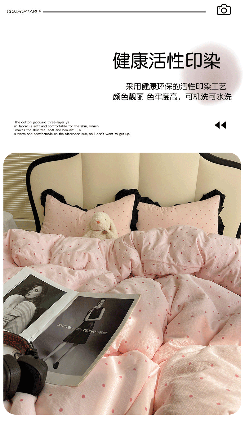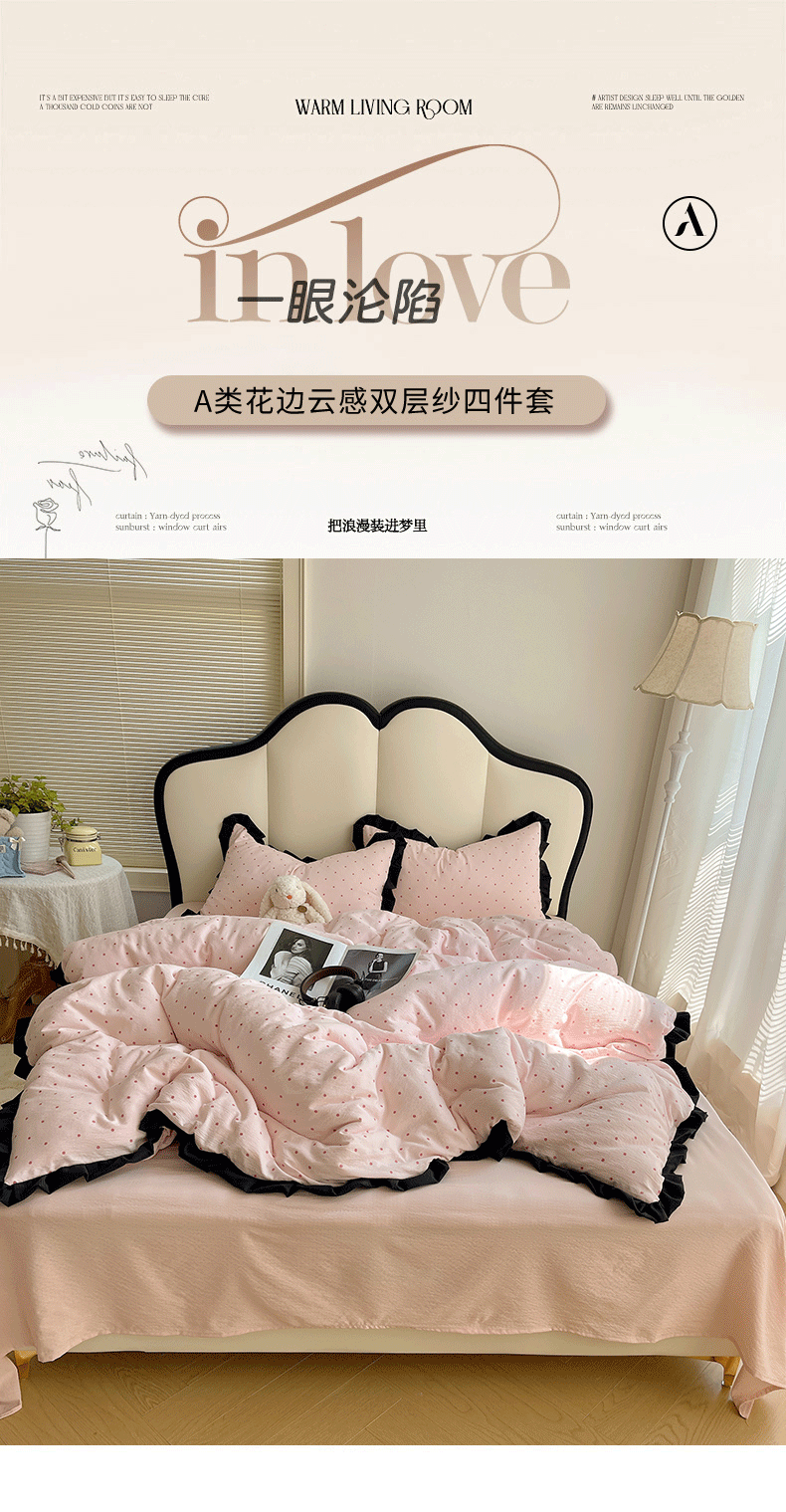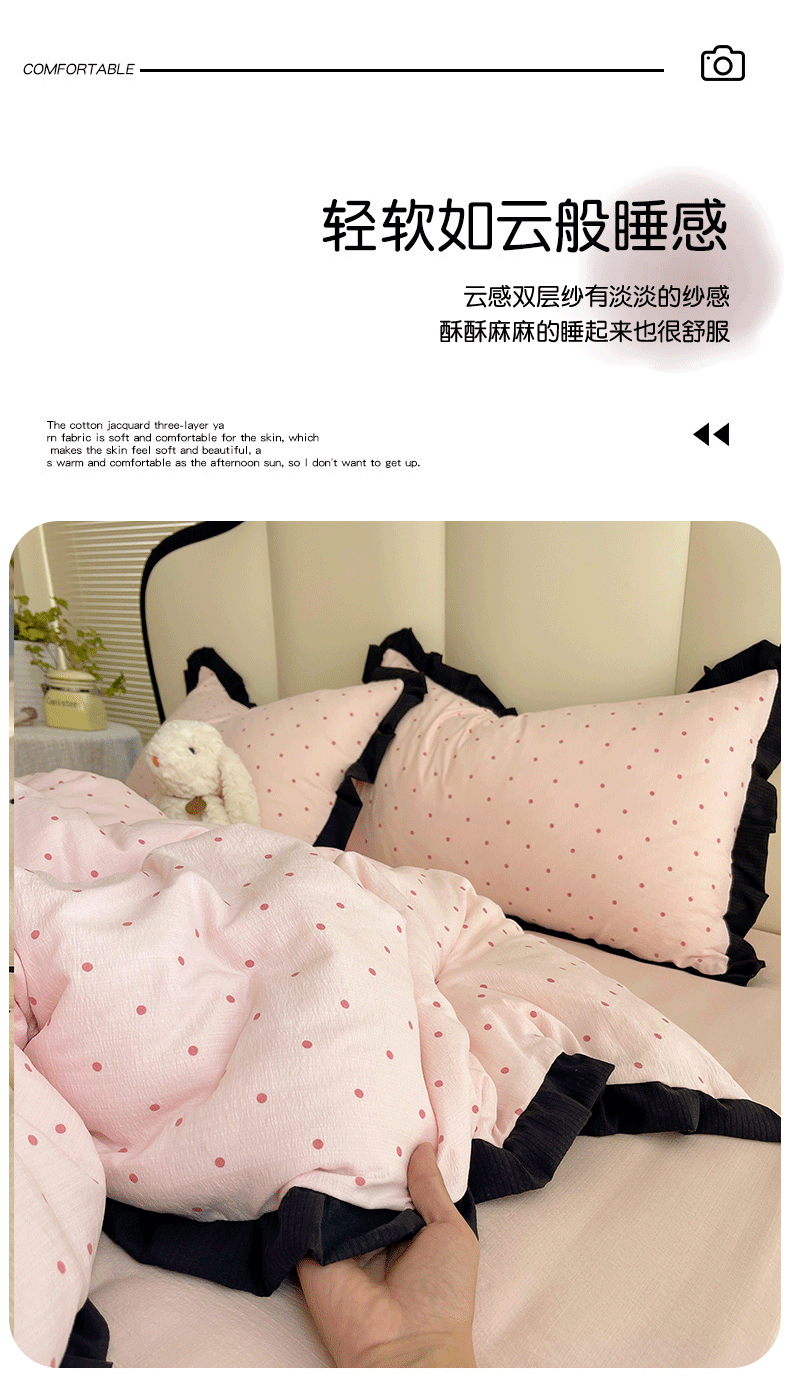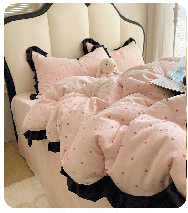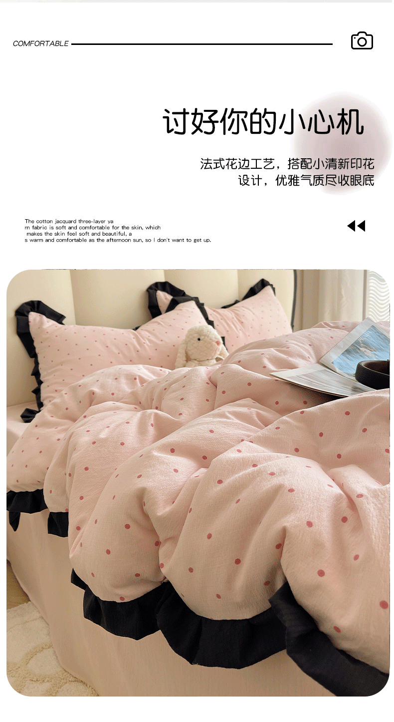 当前位置: 91家纺网 > 商品网购 > 床品套件 > 四件套 > 其它四件套 > 韩巢家纺 2025新款黑皱皱双层纱花边款被套四件套直播热销款学生宿舍床单三件套-(提供卖家秀) 红深粉波点【黑皱皱花边款】