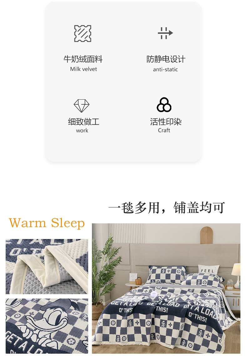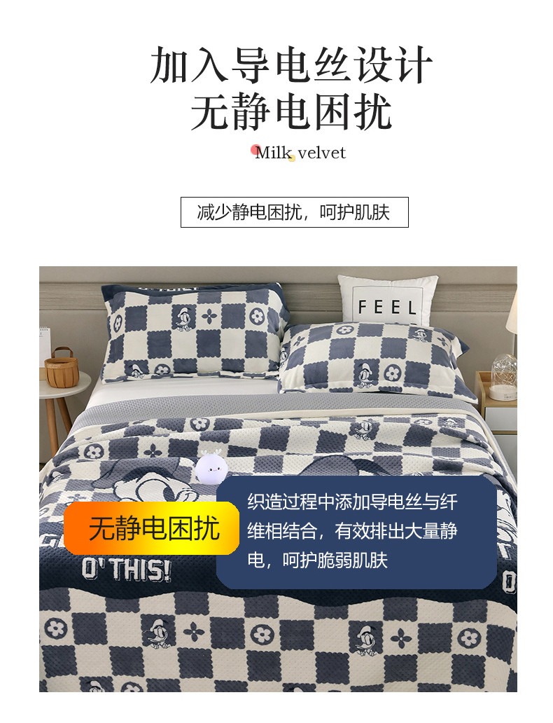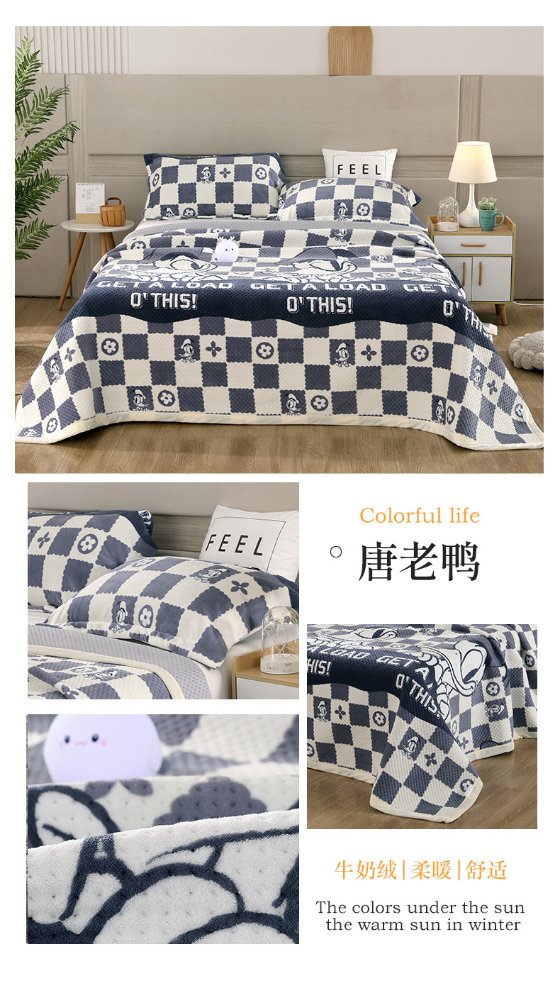 梦精灵 2025新款经典款牛奶绒多功能盖毯床盖 直角-唐老鸭