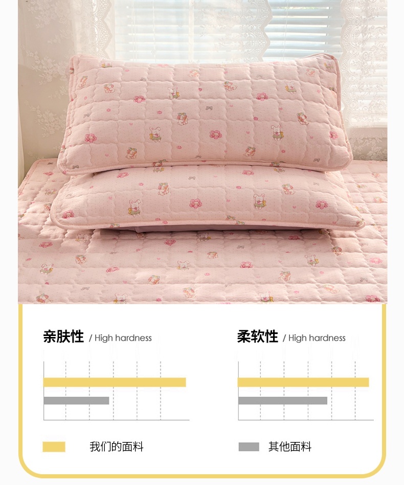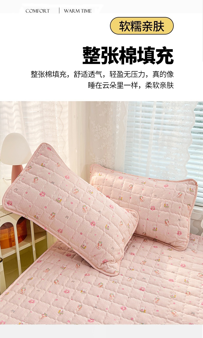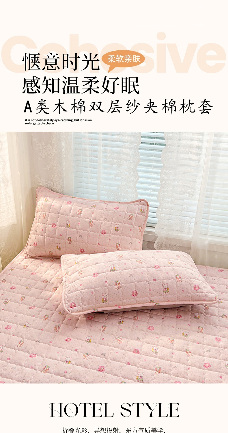 商品名称:圣比熊 2025新款云感双层纱夹棉枕套宿舍单人枕芯套一对装加厚枕头套 花田小兔