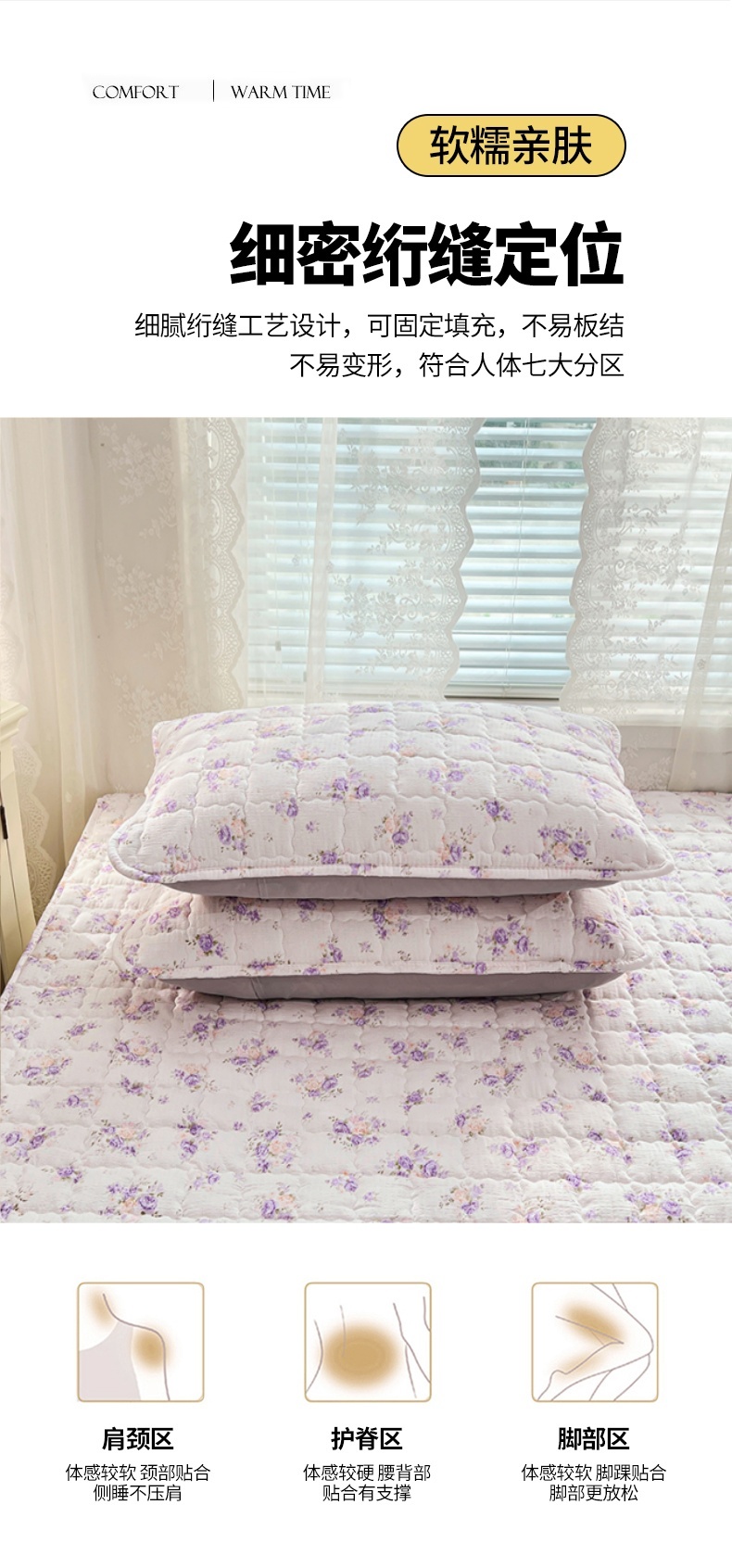 商品名称:梦舒羽 2025新款云感双层纱夹棉枕套宿舍单人枕芯套一对装加厚枕头套 紫薇花园