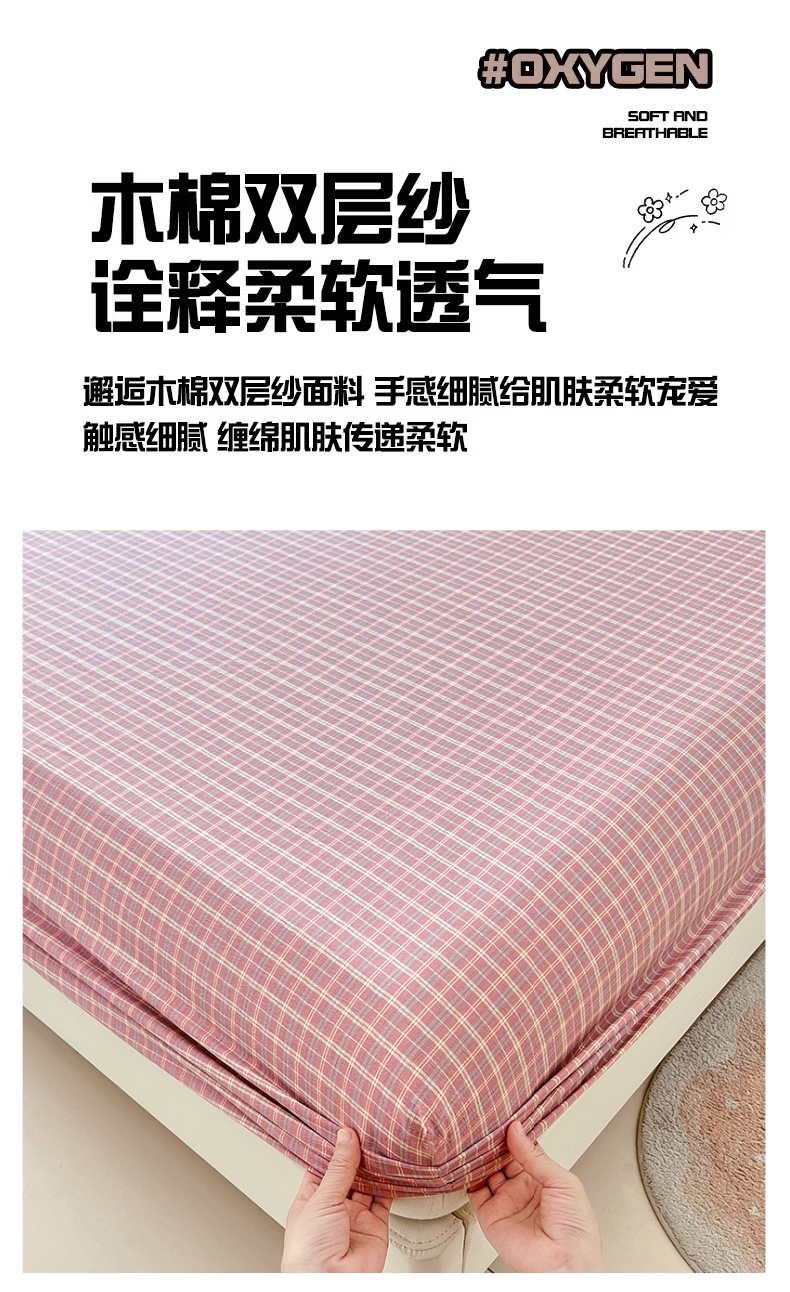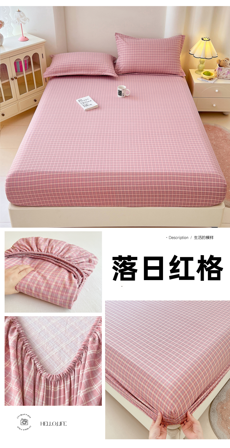• 91家纺网 家纺一手货源 找家纺 梦舒羽 2025新款双层纱格子床笠防滑床罩床垫保护套榻榻米宿舍三件套 常规款-落日红格