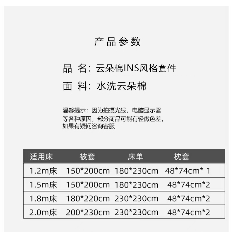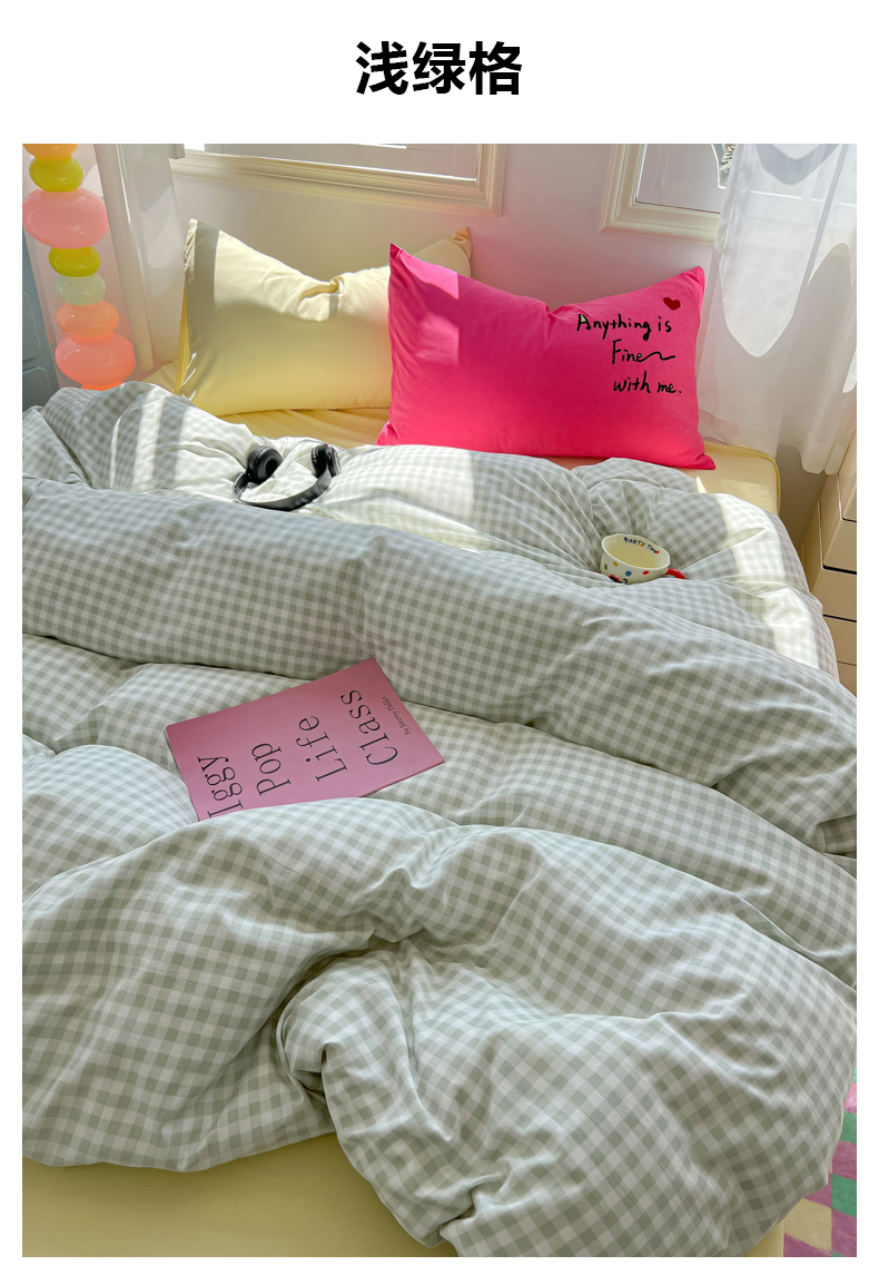 商品名称:(总)子钦家纺 2025新款云朵棉针织棉开学季混搭INS风学生宿舍床单床笠四件套-小清新