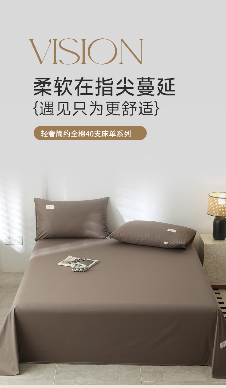 • 91家纺网 家纺一手货源 找家纺 眠博士 2025新款轻奢简约40s全棉纯棉纯色单床单 床单单件 40支床单-春泥