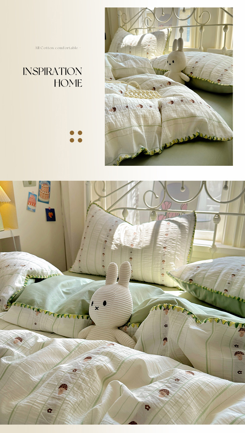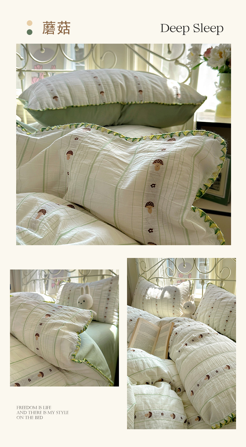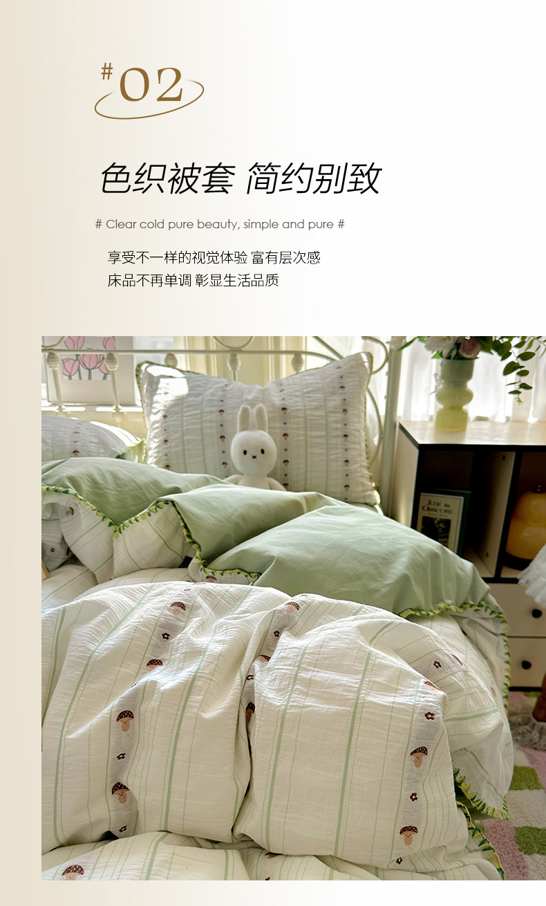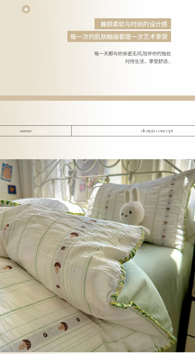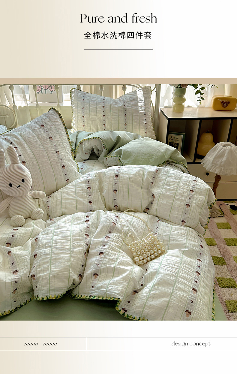田野 2025新款全棉水洗棉提花四件套 蘑菇