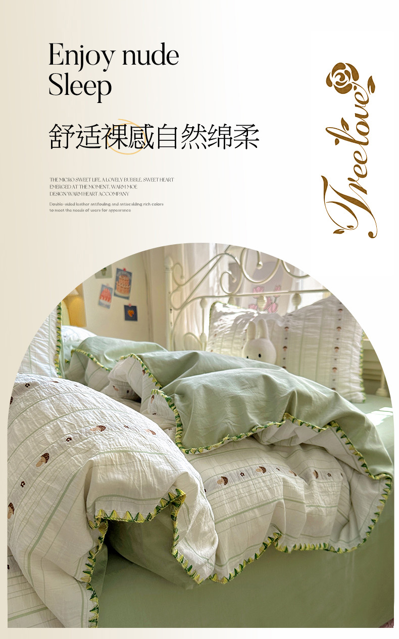 (总)田野 2023新款全棉A类贝壳边双层纱四件套,饼干熊,波波兔,呆萌熊,萌宠乐园,萌兔森林,甜心小兔,薇拉,小蘑菇,伊甜