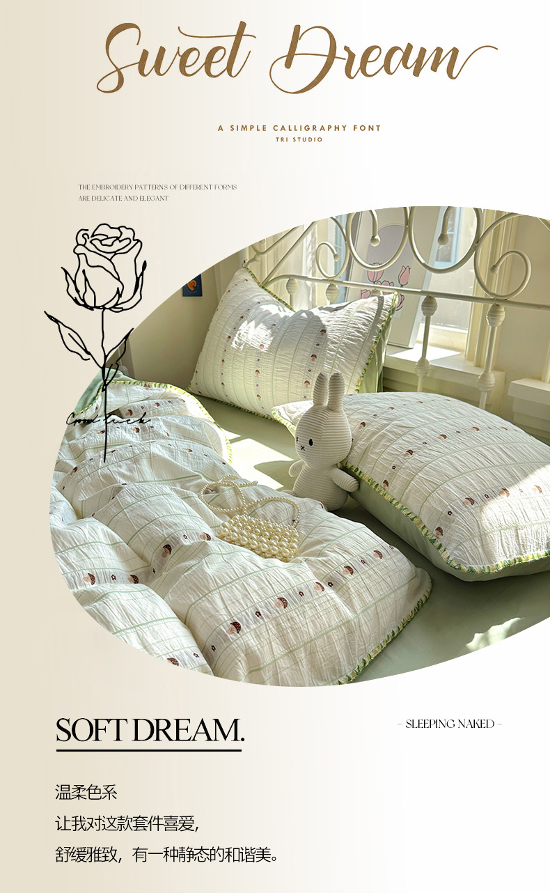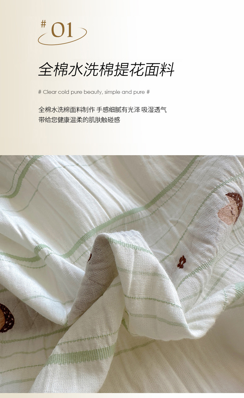 (总)田野 2025新款全棉水洗棉提花四件套,花田,花颜,帽子狗,蘑菇,飘带,泰迪狗,小树林-咖,小象,小雨点,樱桃-绿