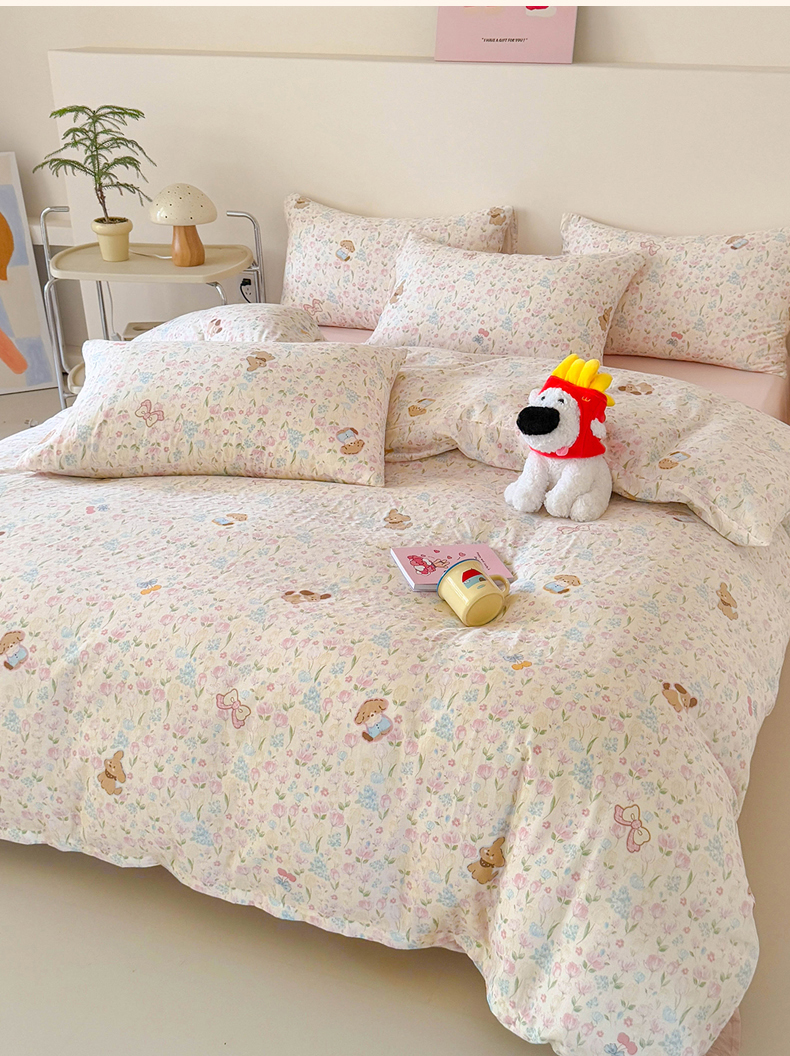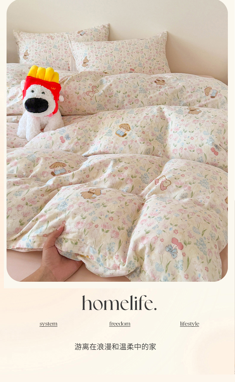 当前位置: 91家纺网 > 商品网购 > 床品套件 > 四件套 > 全棉普通四件套 > 麦伦家居 2025新款A类全棉纯棉有氧双层纱人字纹提花四件套 花丛狗狗