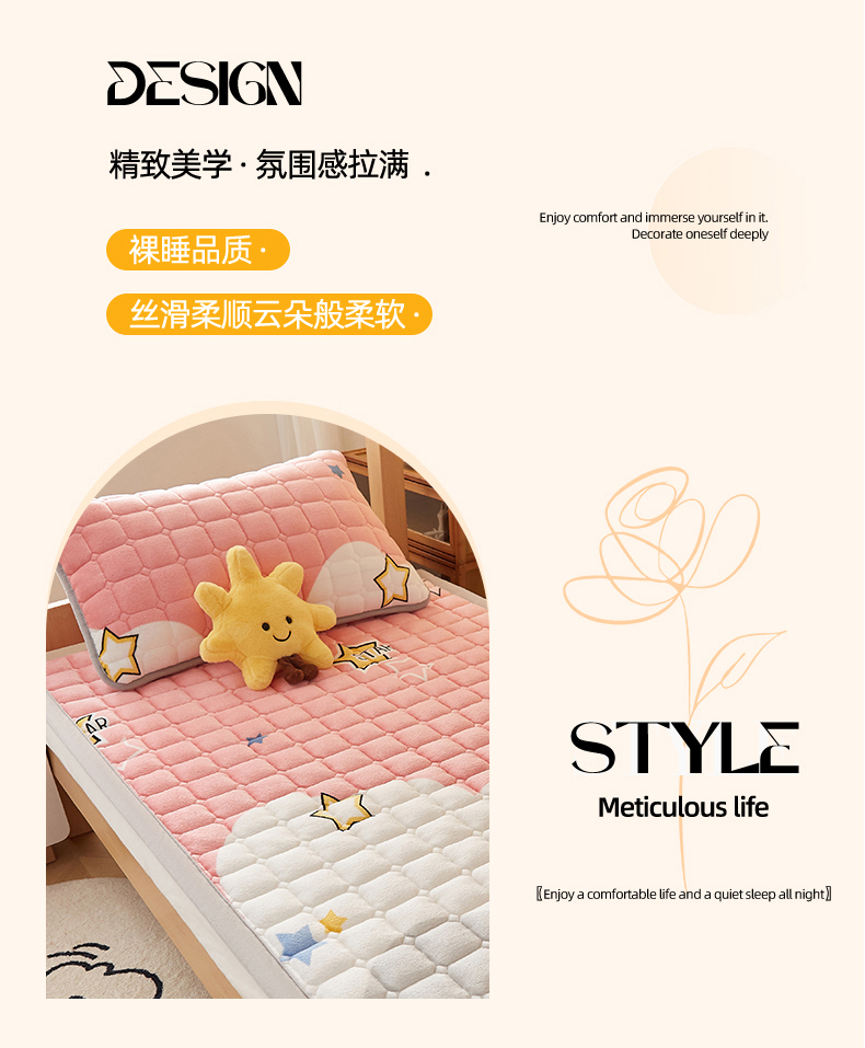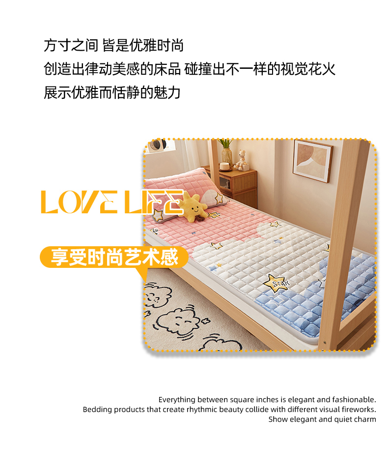 (总)奇丝雅 2025新款A类牛奶绒泡泡绒床褥床垫床盖兔毛绒家用学生宿舍上下铺寝室褥子软垫床护垫夹棉(大床)场景二,星星猫咪,月亮湾,趴趴狗,繁星,爱心咖,樱桃猫咪,幻影灰,暖绒蓝,清新绿,柔和蓝