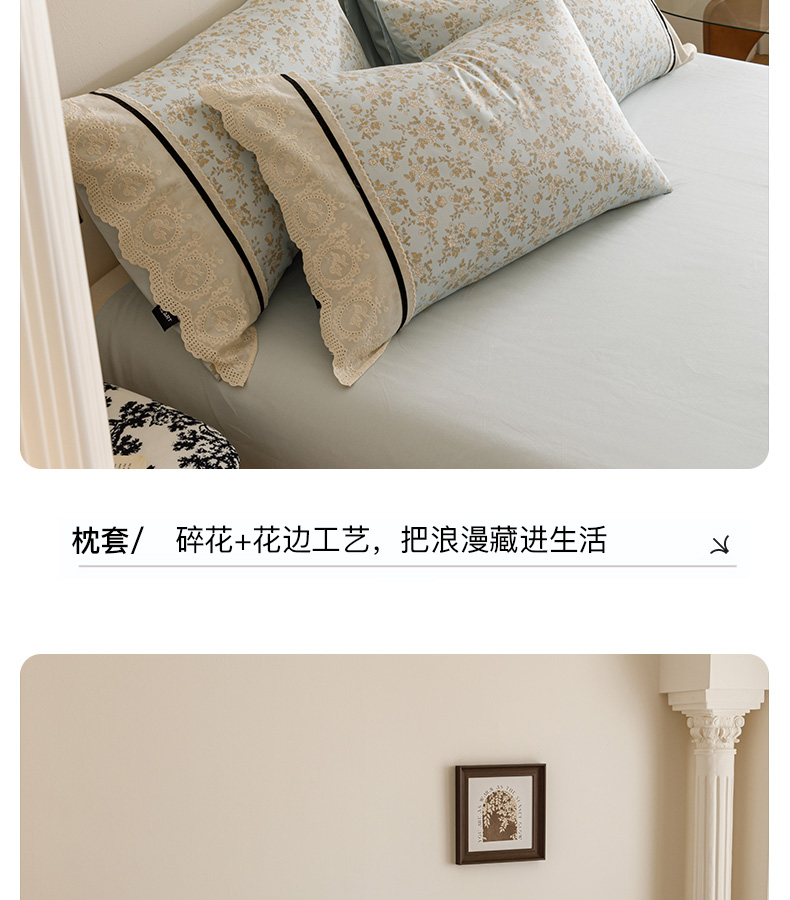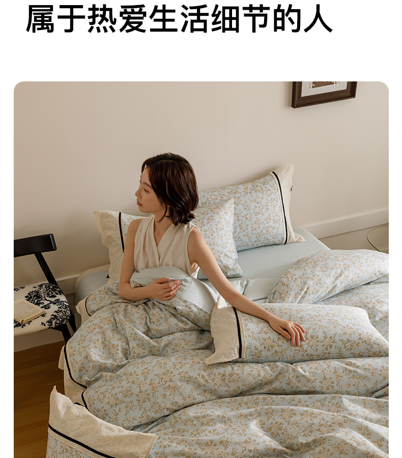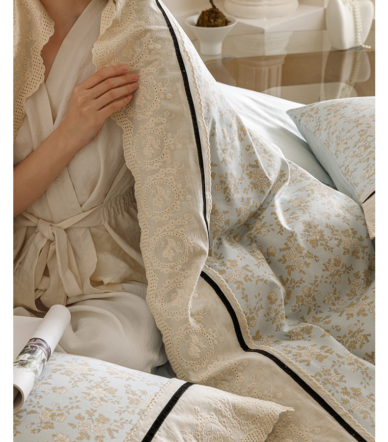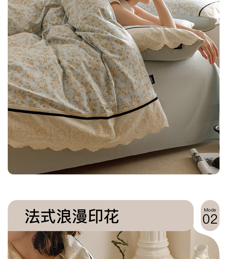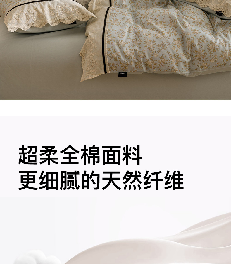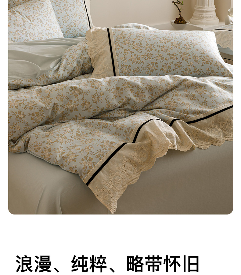 商品名称:卡姿家纺 2025新款小法式镂空棉布花边款四件套 春染斜阳