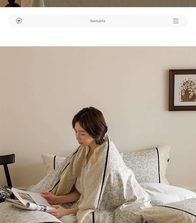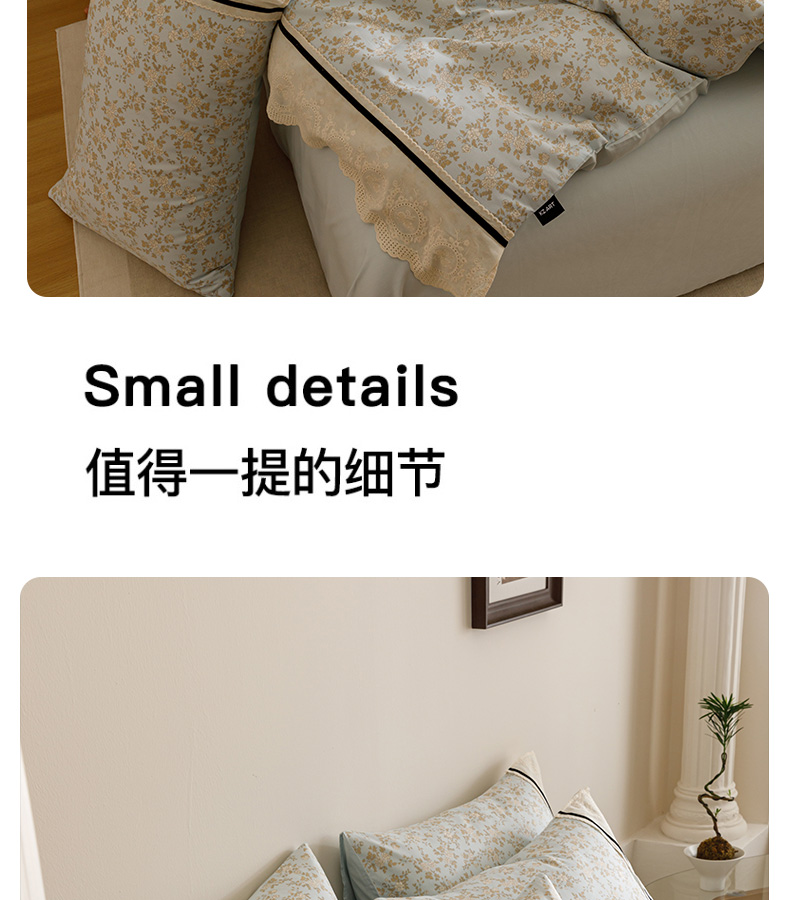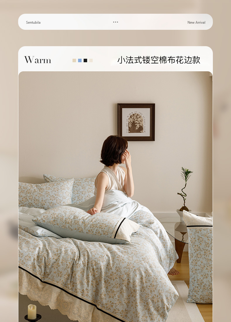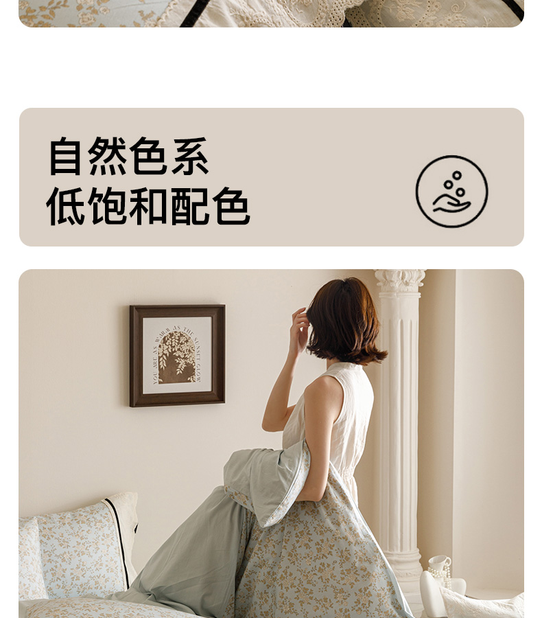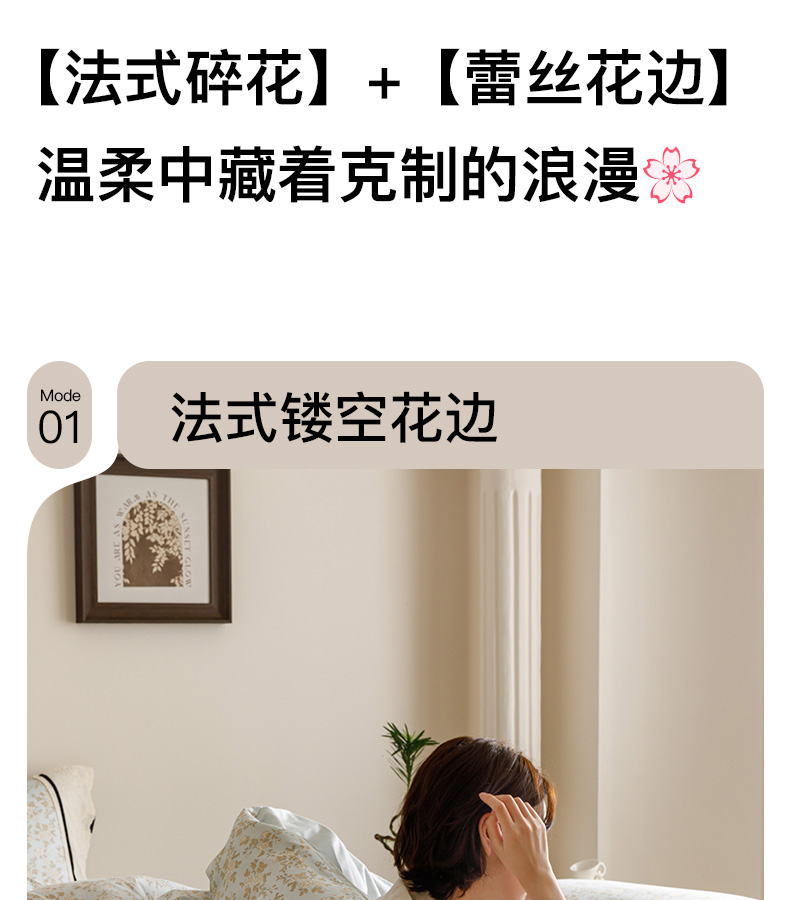 商品名称:卡姿家纺 2025新款小法式镂空棉布花边款四件套 春染斜阳