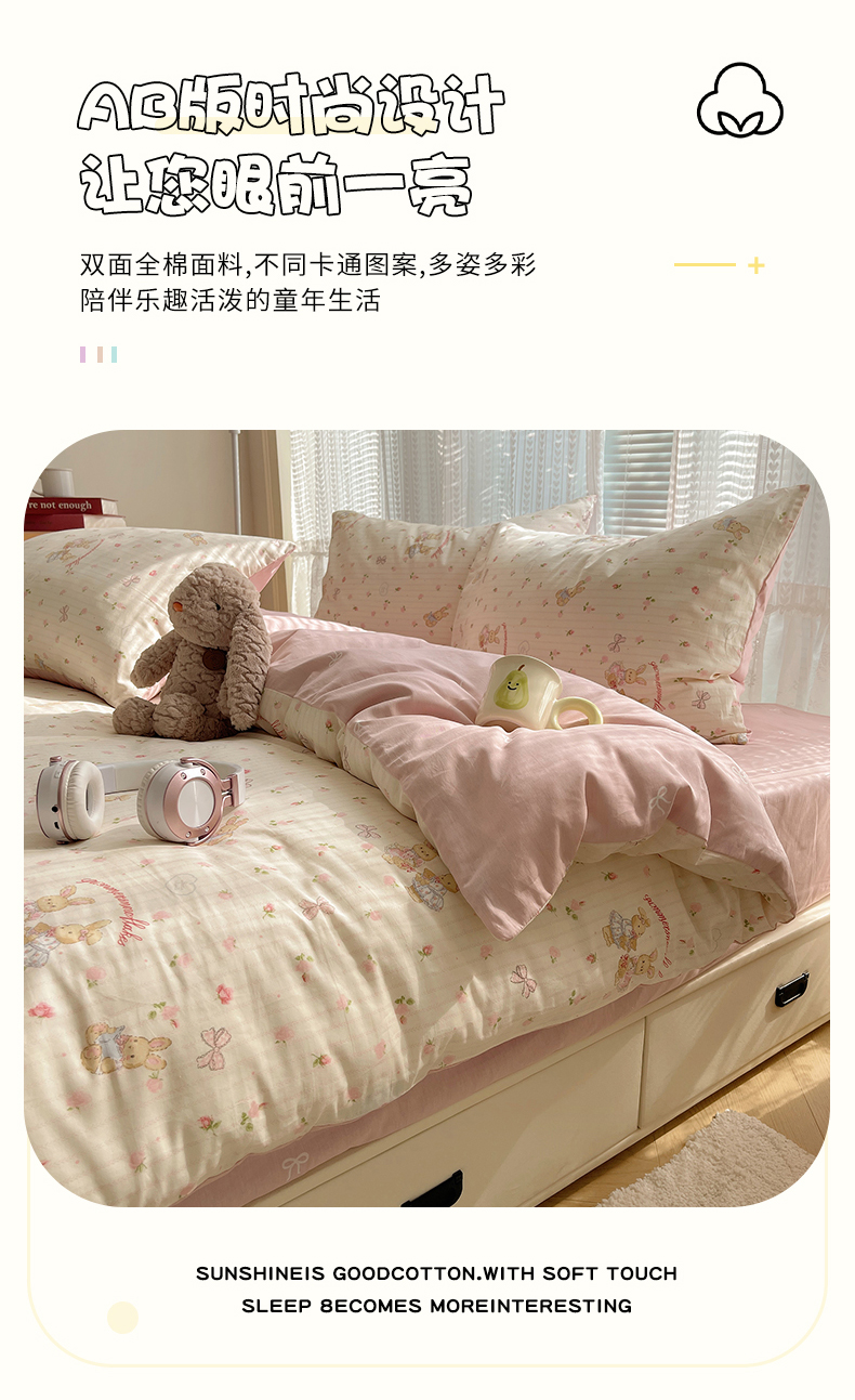 当前位置: 91家纺网 > 商品网购 > 床品套件 > 四件套 > 全棉普通四件套 > 瑞莱 2025新款开学季全棉纯棉萌趣印花四件套 甜蜜纪念日