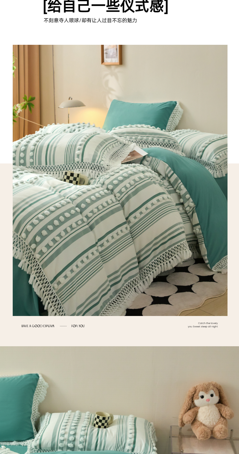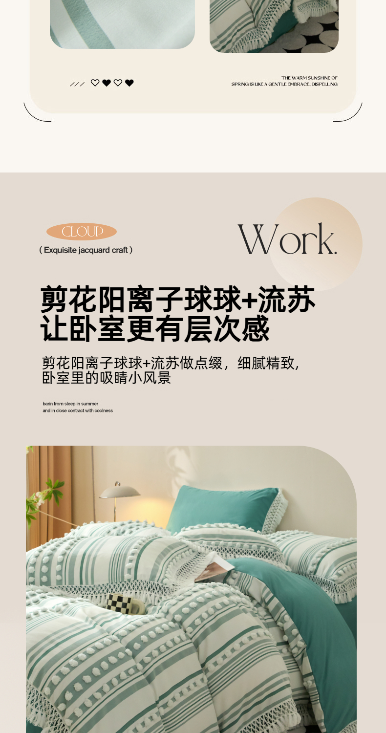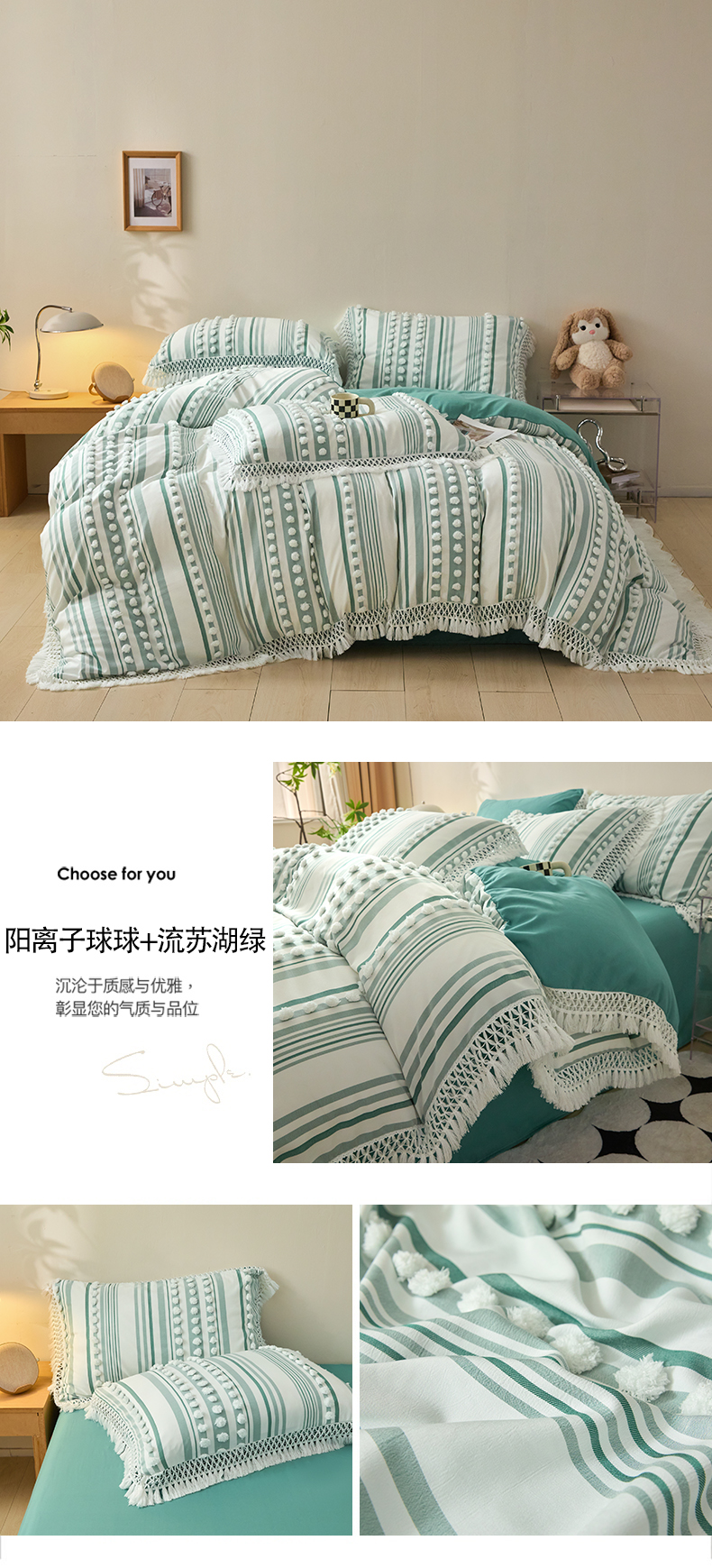 商品名称:(总)缘生活 2025新款长年供货四季通用高端大气阳离子球球+流苏四件套