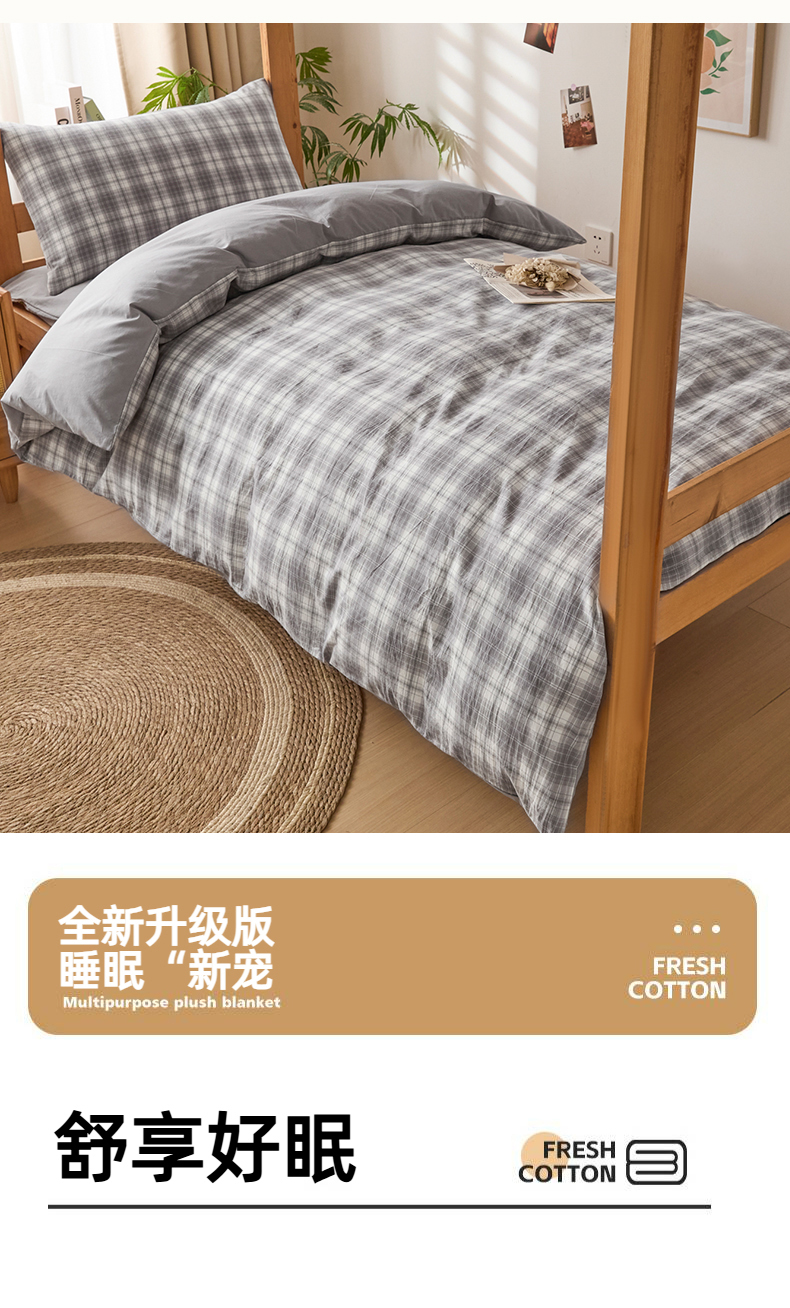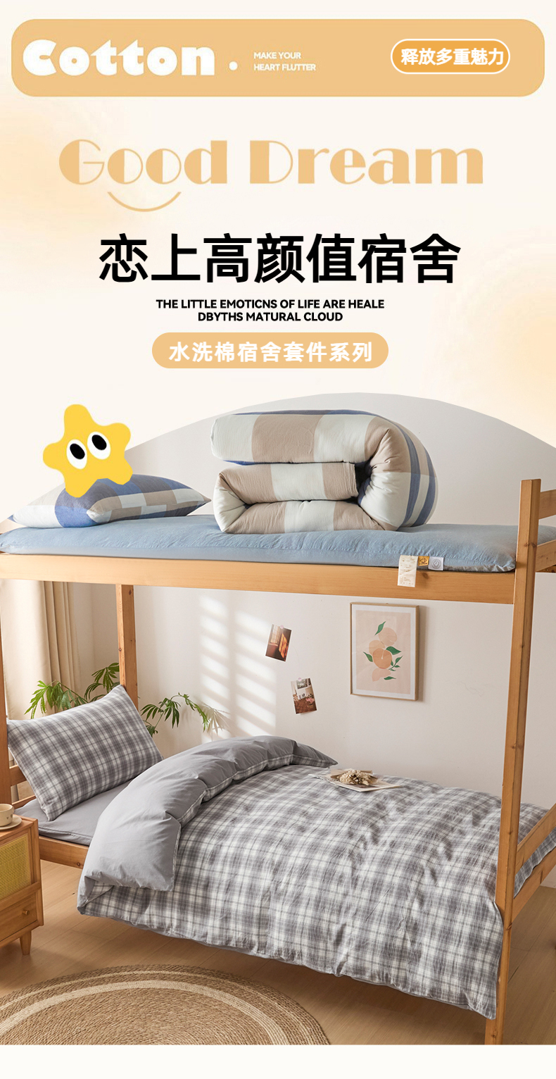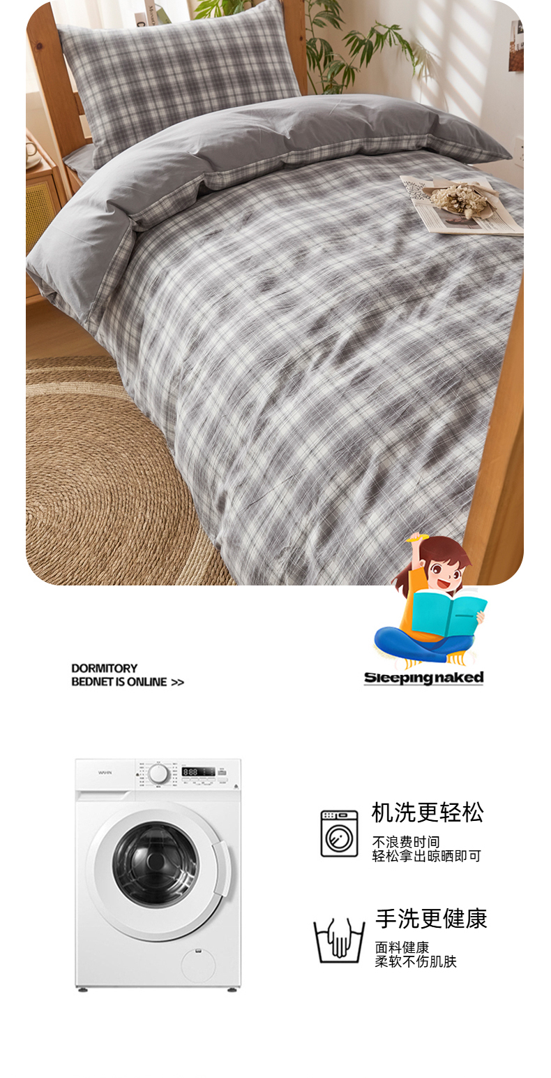 (总)爱屋及屋 2025新款水洗棉学生季大礼包学生宿舍六件套棉花被+棉花垫子+枕头+三件套一站式全套,海蓝大格,格韵蓝,光年灰,灰中格,简析粉,简析蓝,蓝咖大格,蓝小格,蓝中格,清新格,韵绿格,左岸蓝