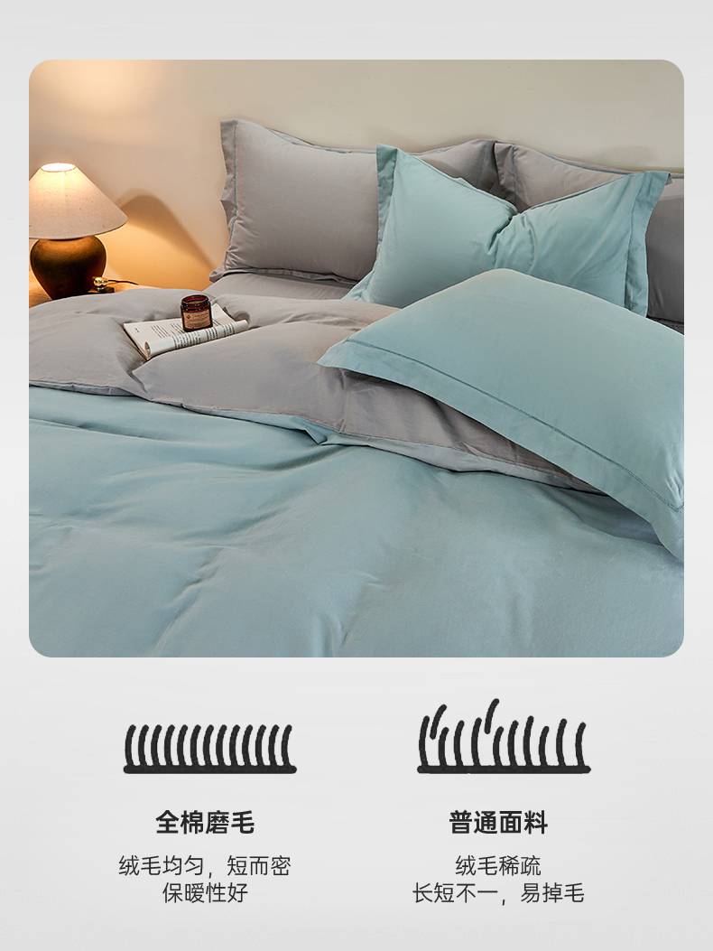 当前位置: 91家纺网 > 商品网购 > 床品套件 > 四件套 > 全棉普通四件套 > 憨豆家纺 2026新款全棉磨毛四件套正宗加厚长绒棉贡缎100%纯棉四件套(含买家秀)莫兰迪 莫兰迪-雾蓝拼浅灰