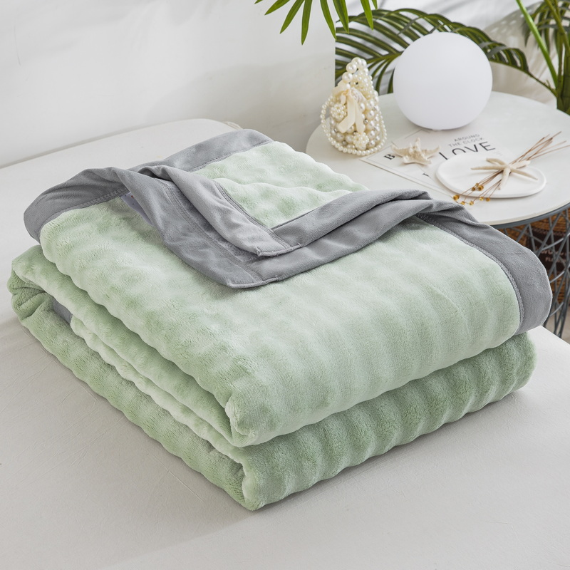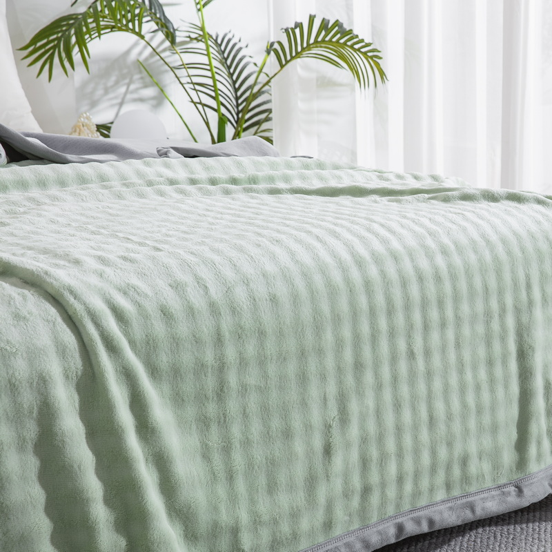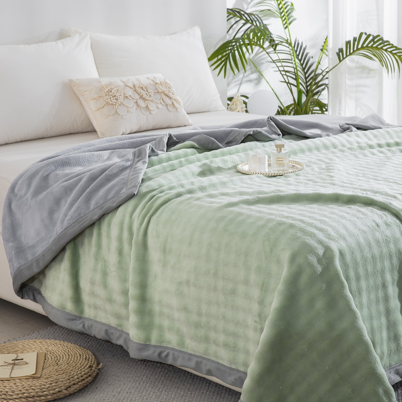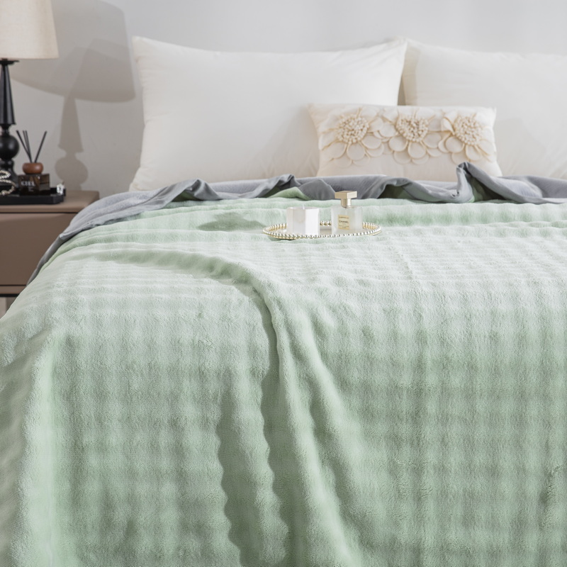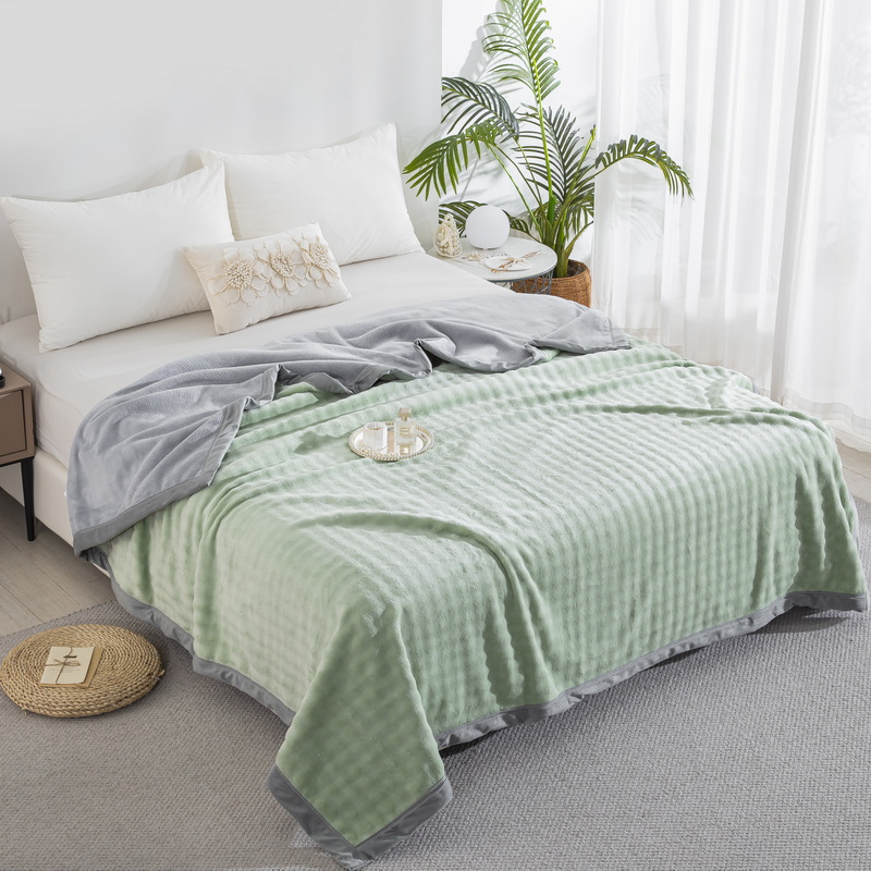 卉晨家纺 2025新款牛奶绒纯色小泡泡复合毯 抹茶绿