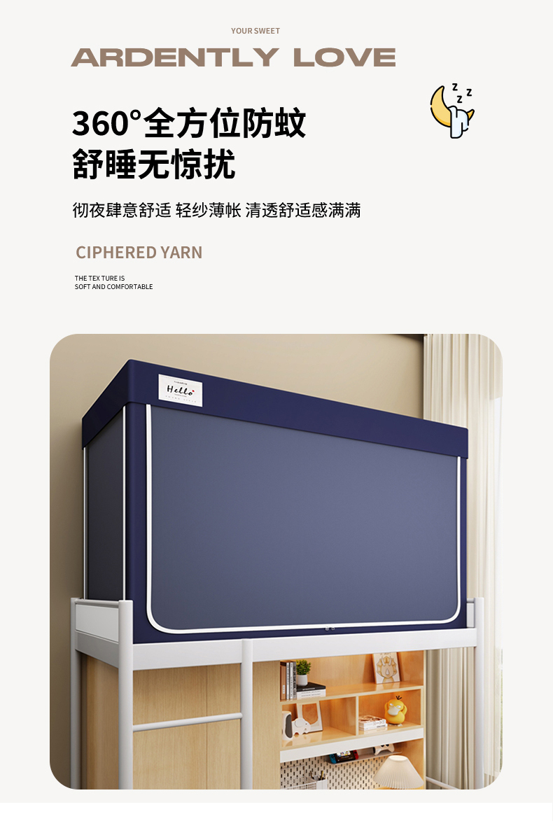 • 91家纺网 家纺一手货源 找家纺 青竹苑 2025新款织标印花纯色强遮光坐床学生蚊帐 纯色宝蓝