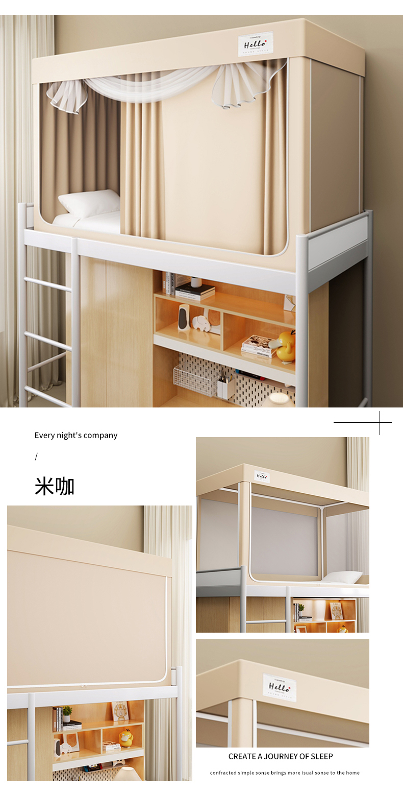 纯色0.9上铺:90×190×110(三开门)-高度伸缩支架款