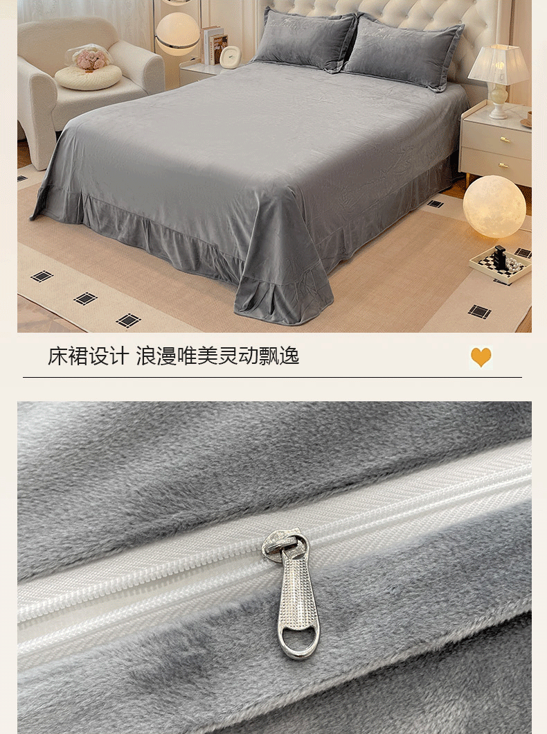 艺玲家纺 2025新款婴儿绒高端绣花四件套 蝶舞-灰色