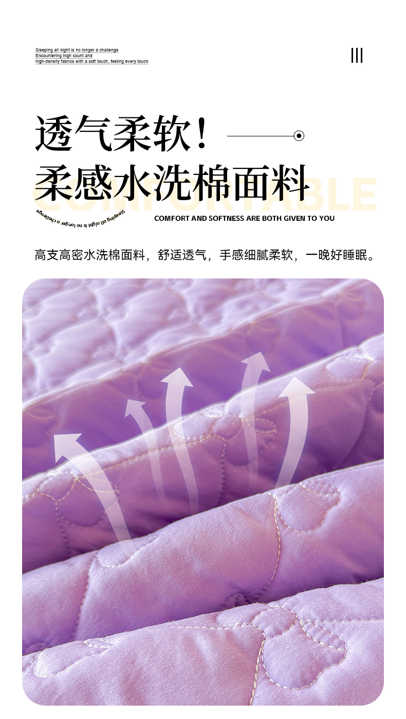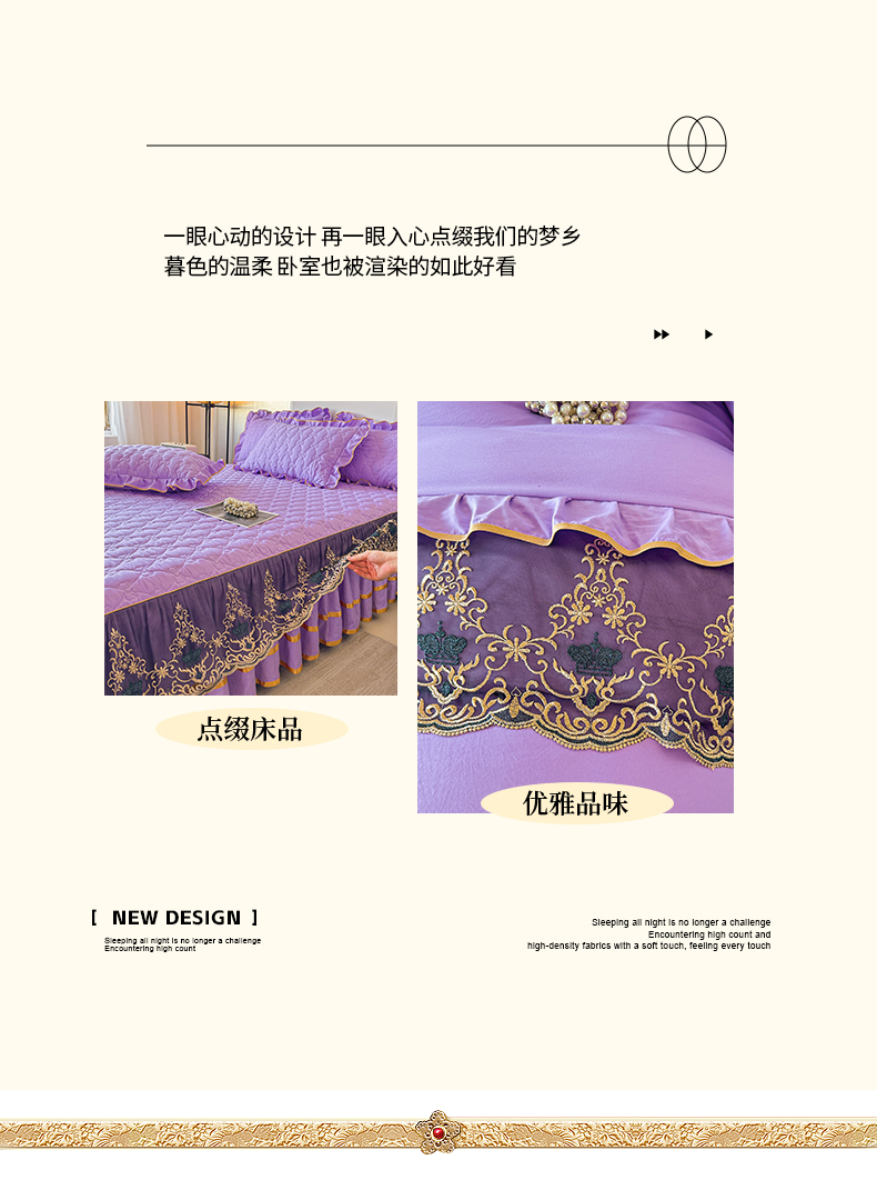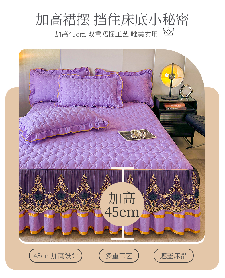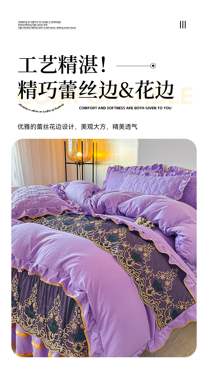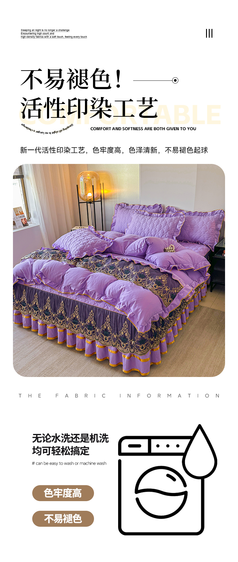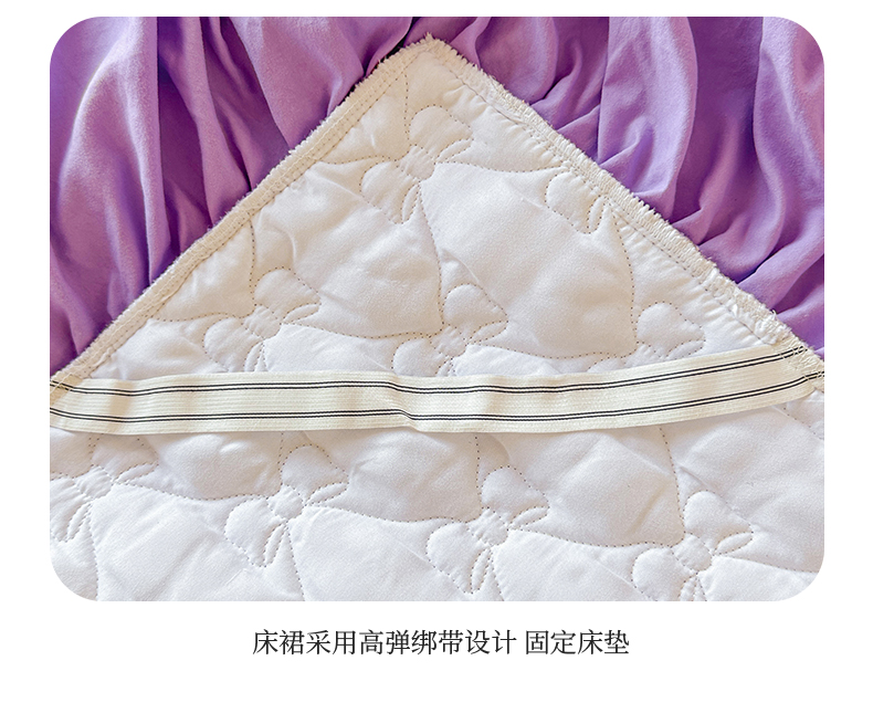 当前位置: 91家纺网 > 商品网购 > 床品套件 > 四件套 > 水洗棉四件套 > 屹成家纺 2025新款水洗棉床裙款四件套-倾城 倾城-浅紫