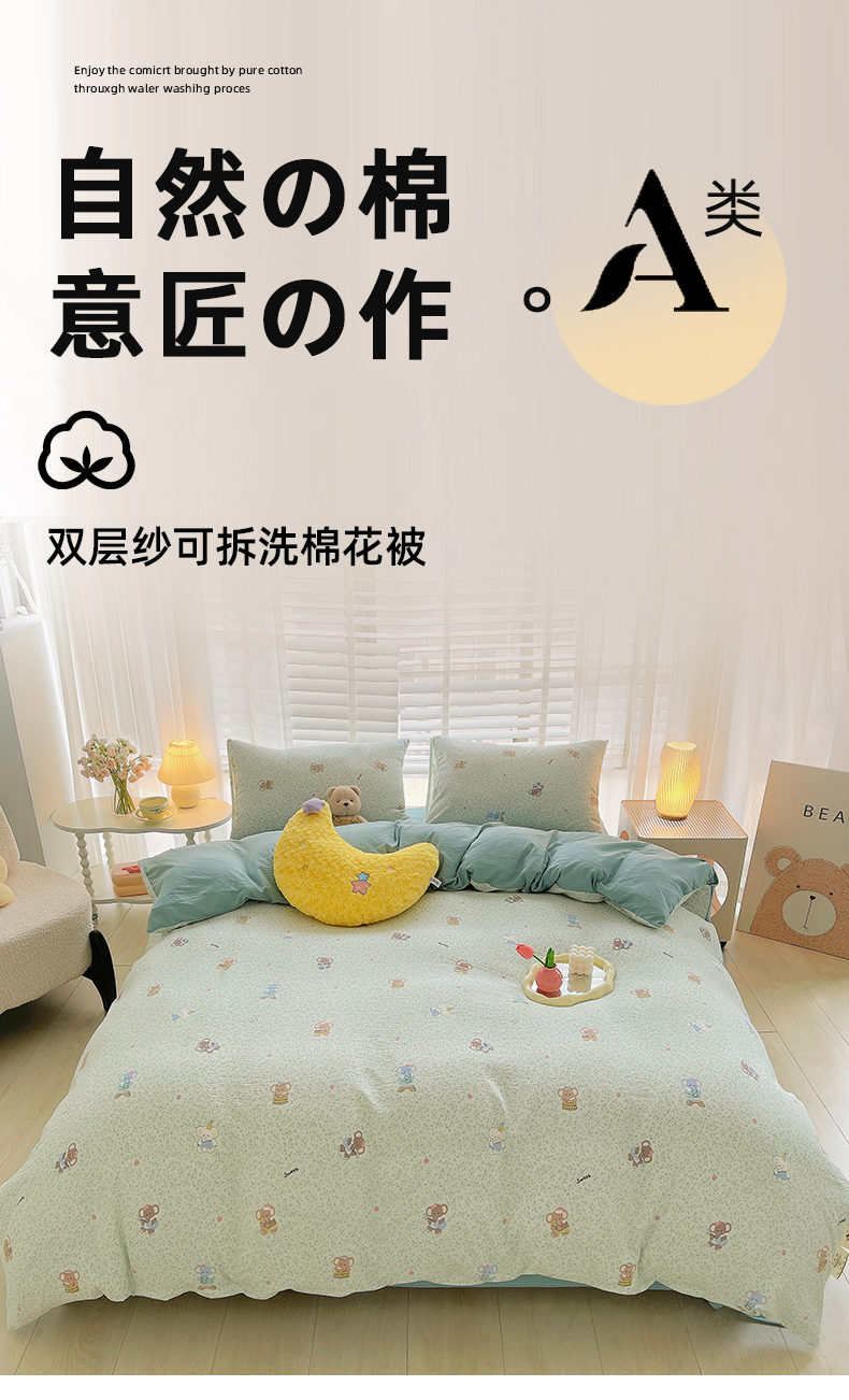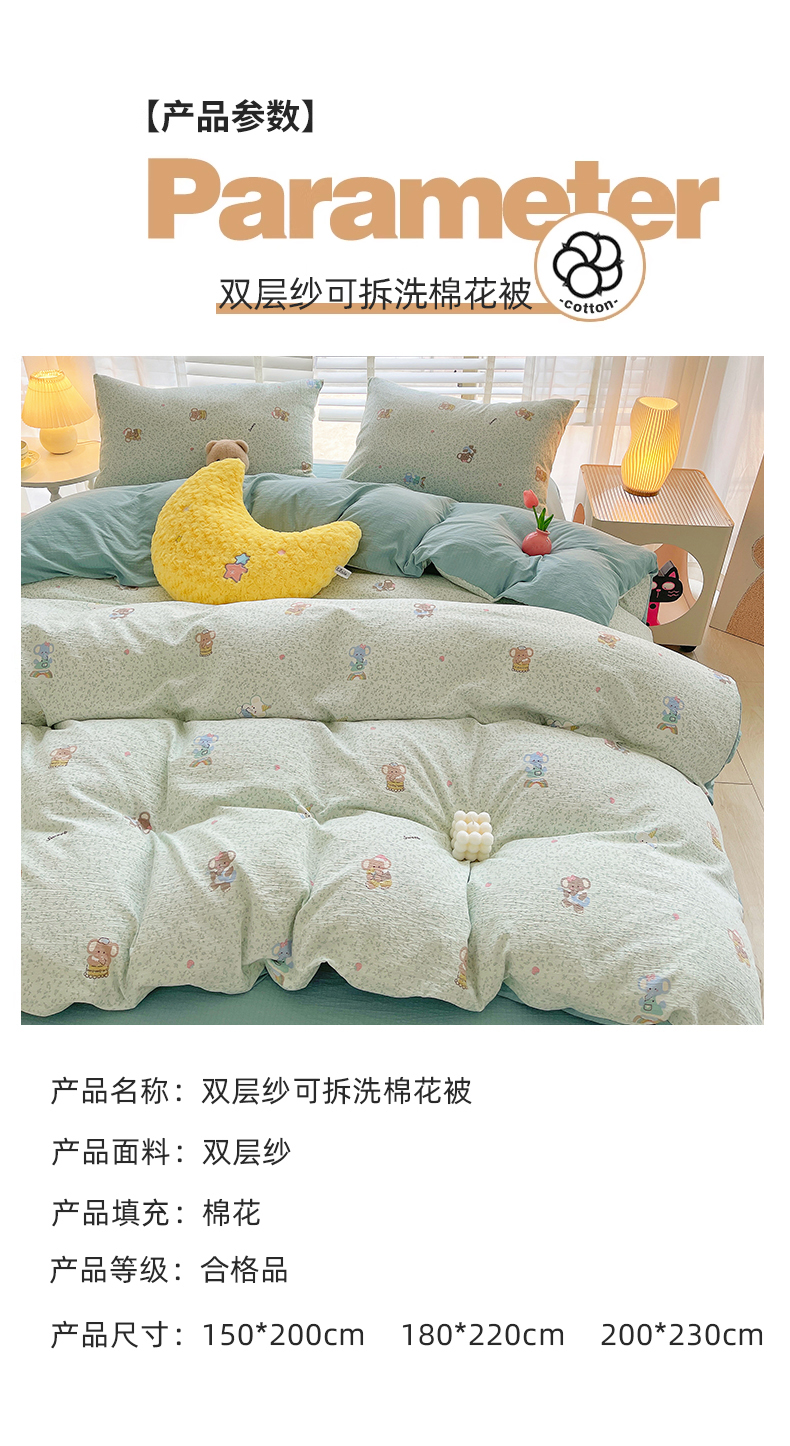 • 91家纺网 家纺一手货源 找家纺 2025新款双层纱可拆洗棉花被 蓝蕊小象