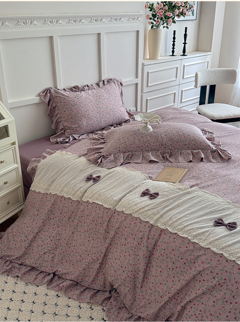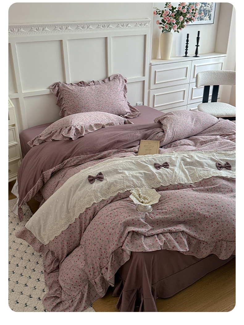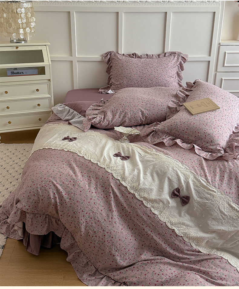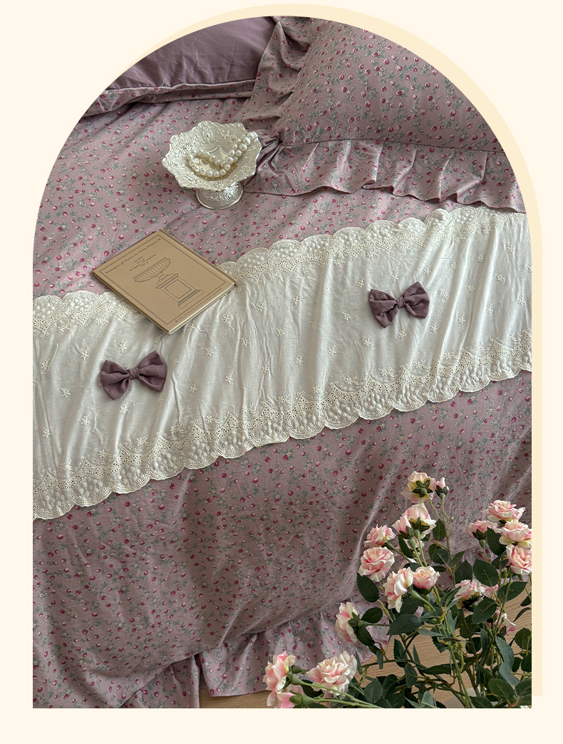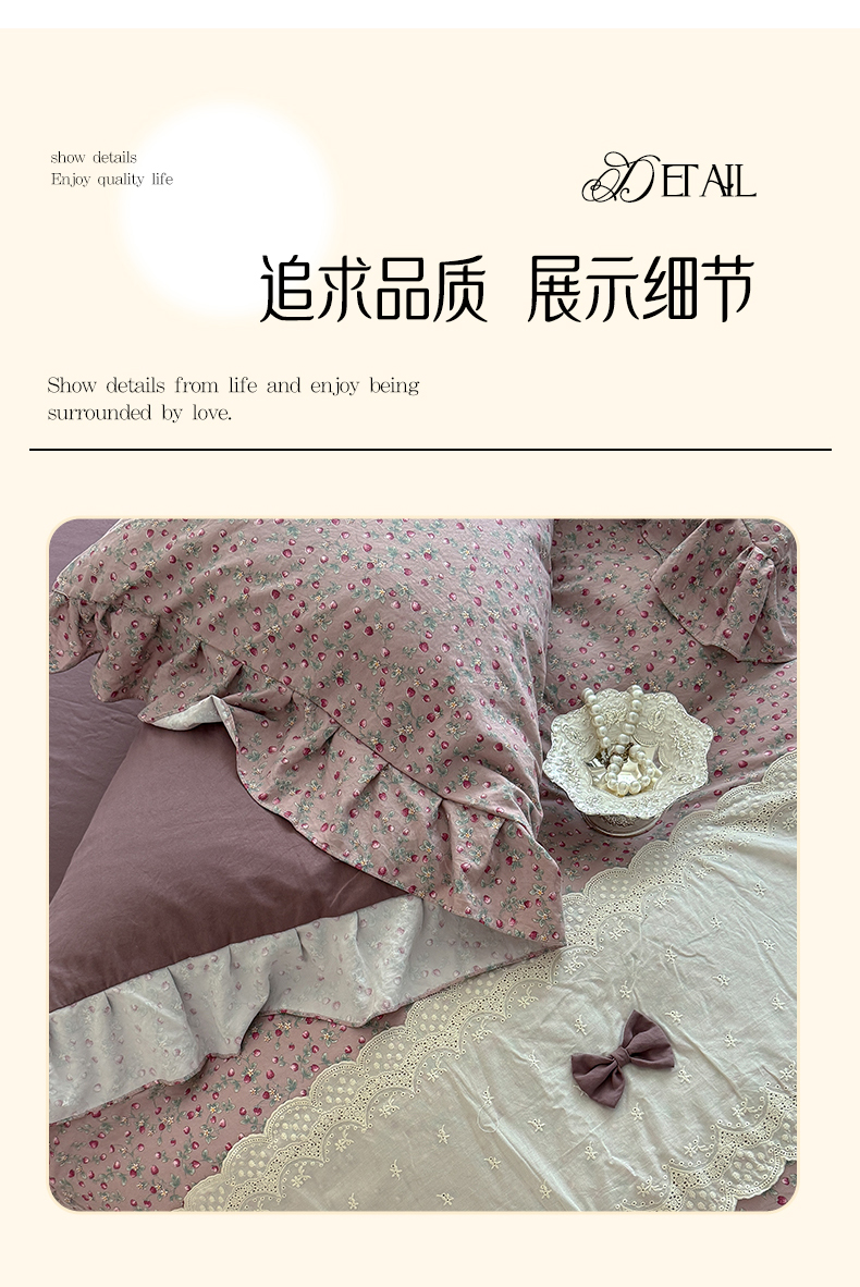 商品名称:吾欢心 2025新款韩系蝴蝶结中古风四件套 安娜花园