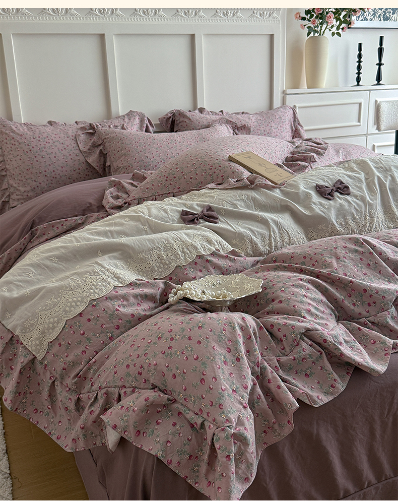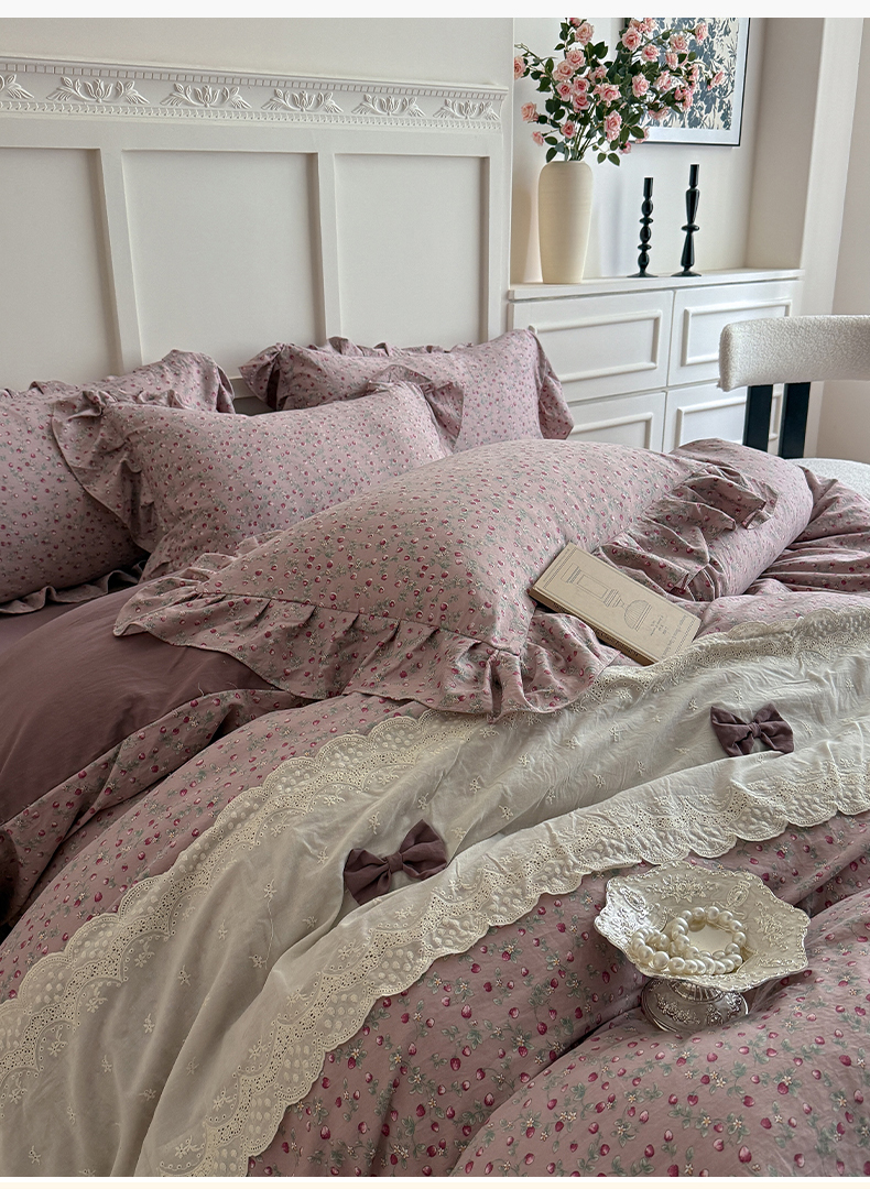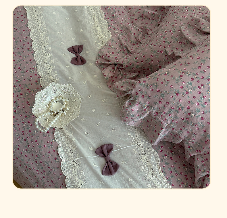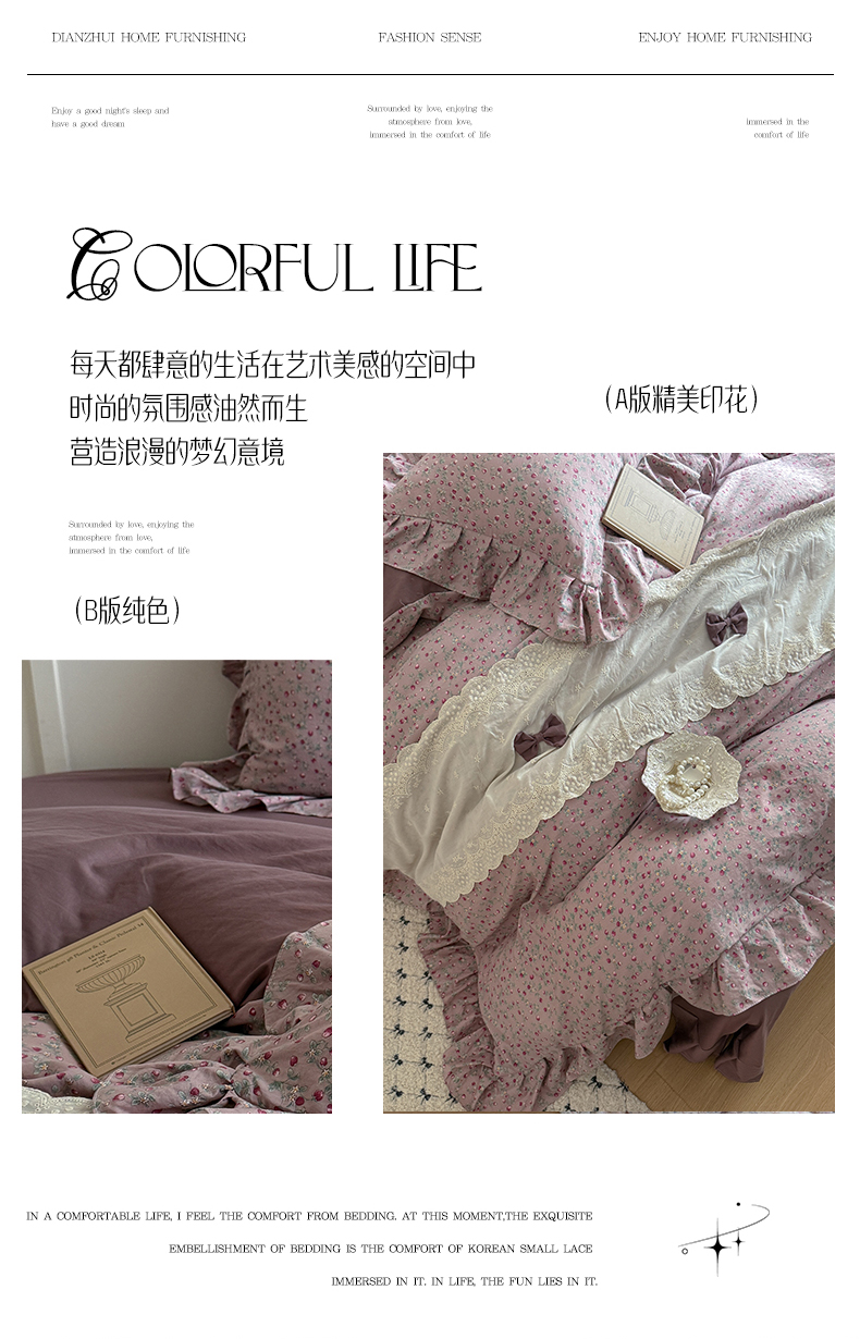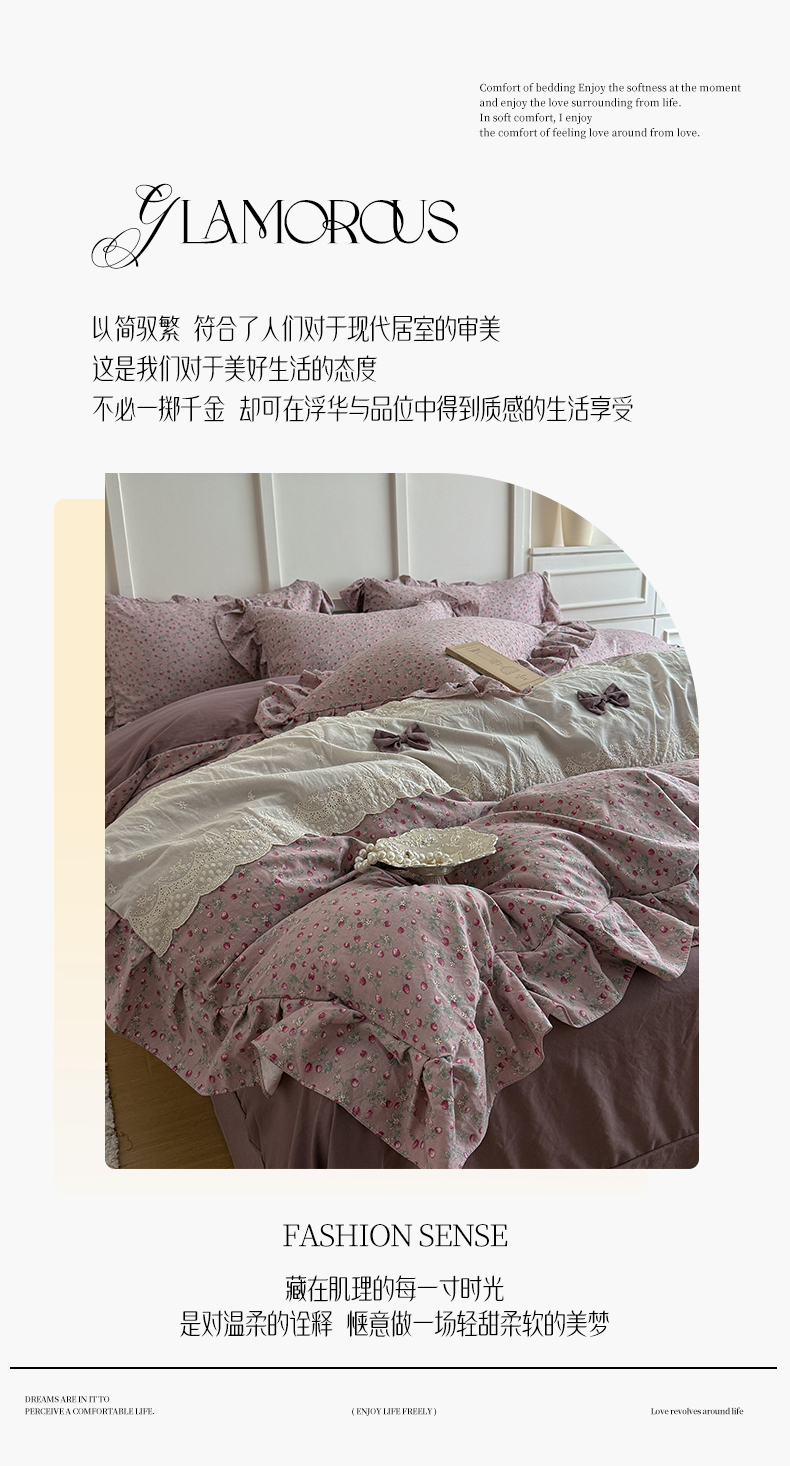 商品名称:吾欢心 2025新款韩系蝴蝶结中古风四件套 安娜花园
