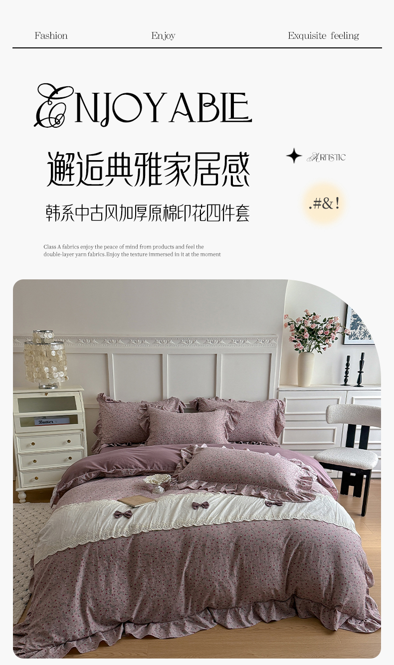 (总)吾欢心 2026春夏新款古法水洗仿棉韩版双层花边四件套,KT猫,斑马,彩色蝴蝶结,卡通小狗,可爱星星人,萌宠宝贝,秘境花园,奶萌小狗,田园趣味,汐颜,小草莓,樱桃派