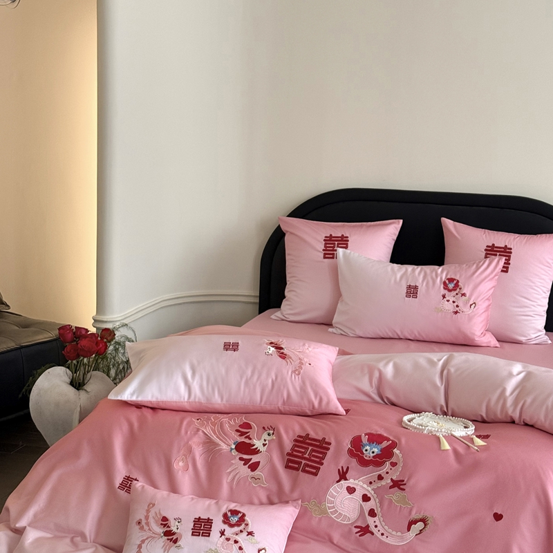 (总)江涞 2026新款100支长绒棉进口高端刺绣可摘卸流苏四件套-迎喜(淘宝券后不低于 418/438),迎喜