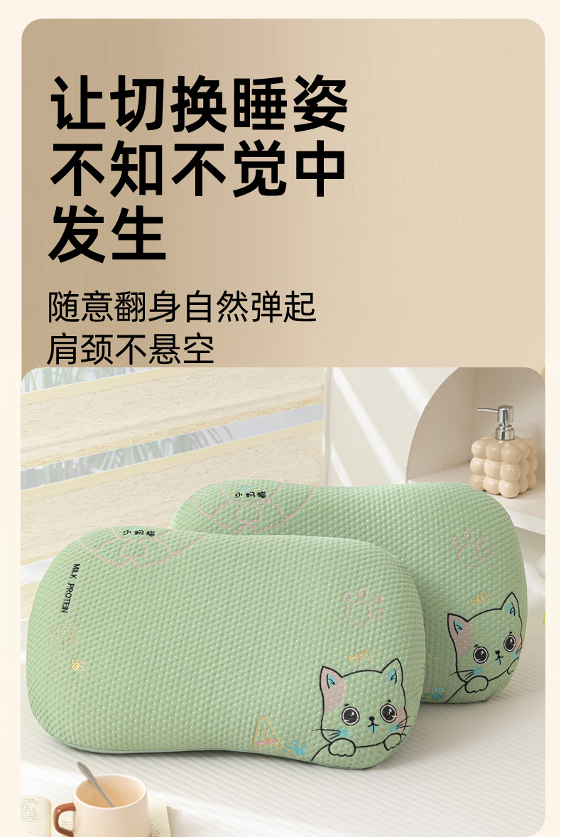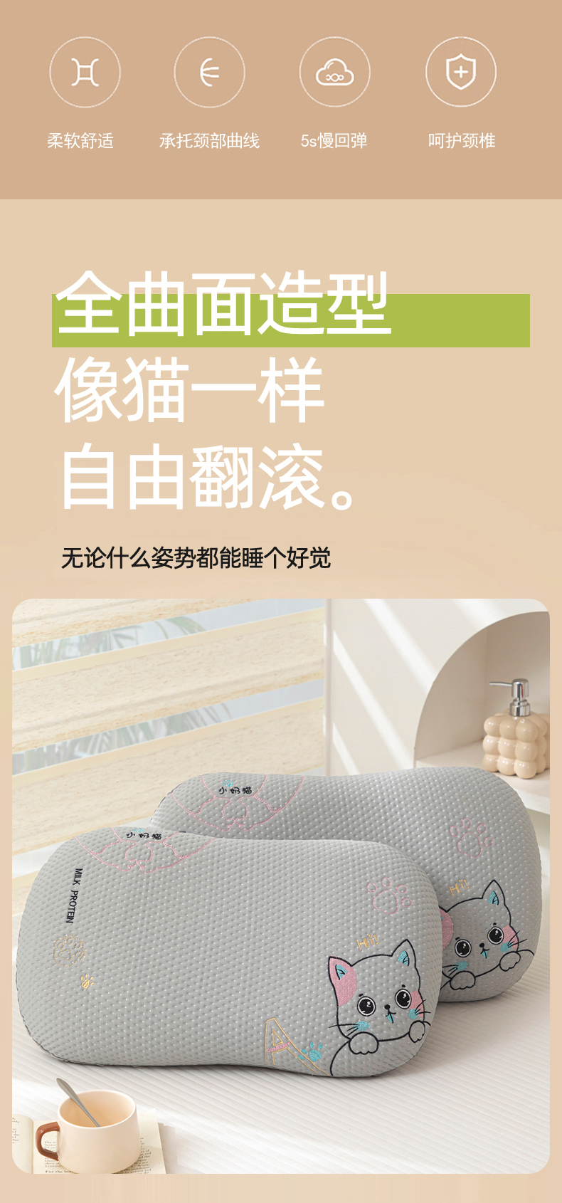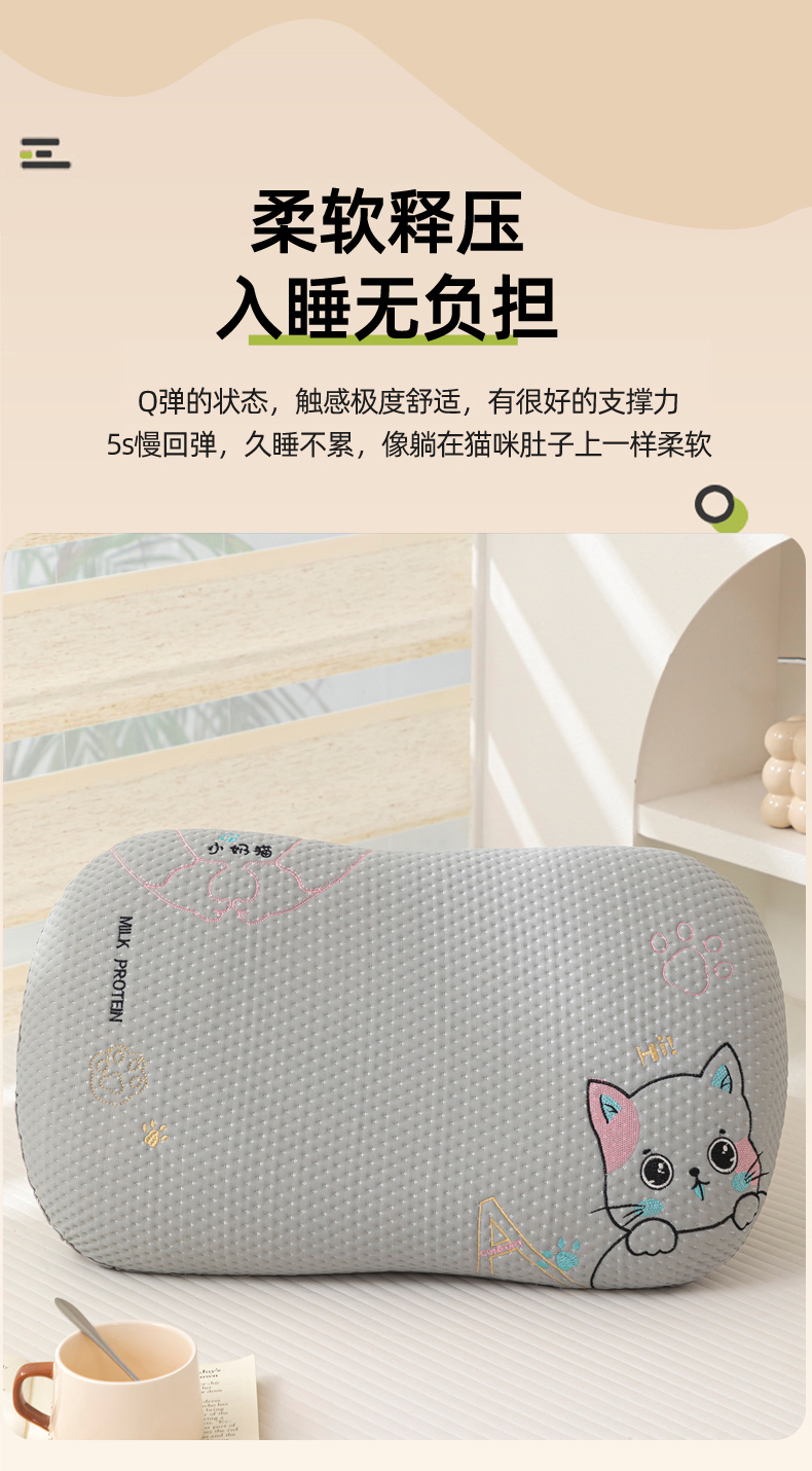 商品名称:大熊枕芯 2025新款小奶猫慢回弹记忆枕猫肚枕枕头枕芯 小奶猫记忆枕-灰