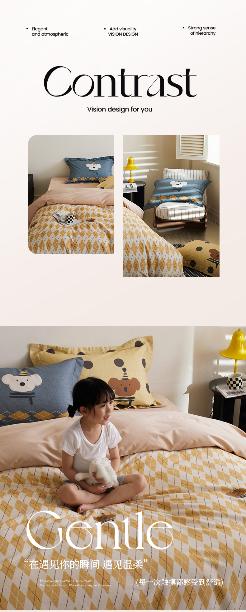 (总)由丽2025新款卡通磨毛印花四件套(控价券后不低于小号190,标准210,加大225),波点象-灰,潮格象-绿,可爱熊-绿,菱形熊-黄,菱形熊-蓝,圣诞-粉,圣诞-米,象先生-绿,知槿