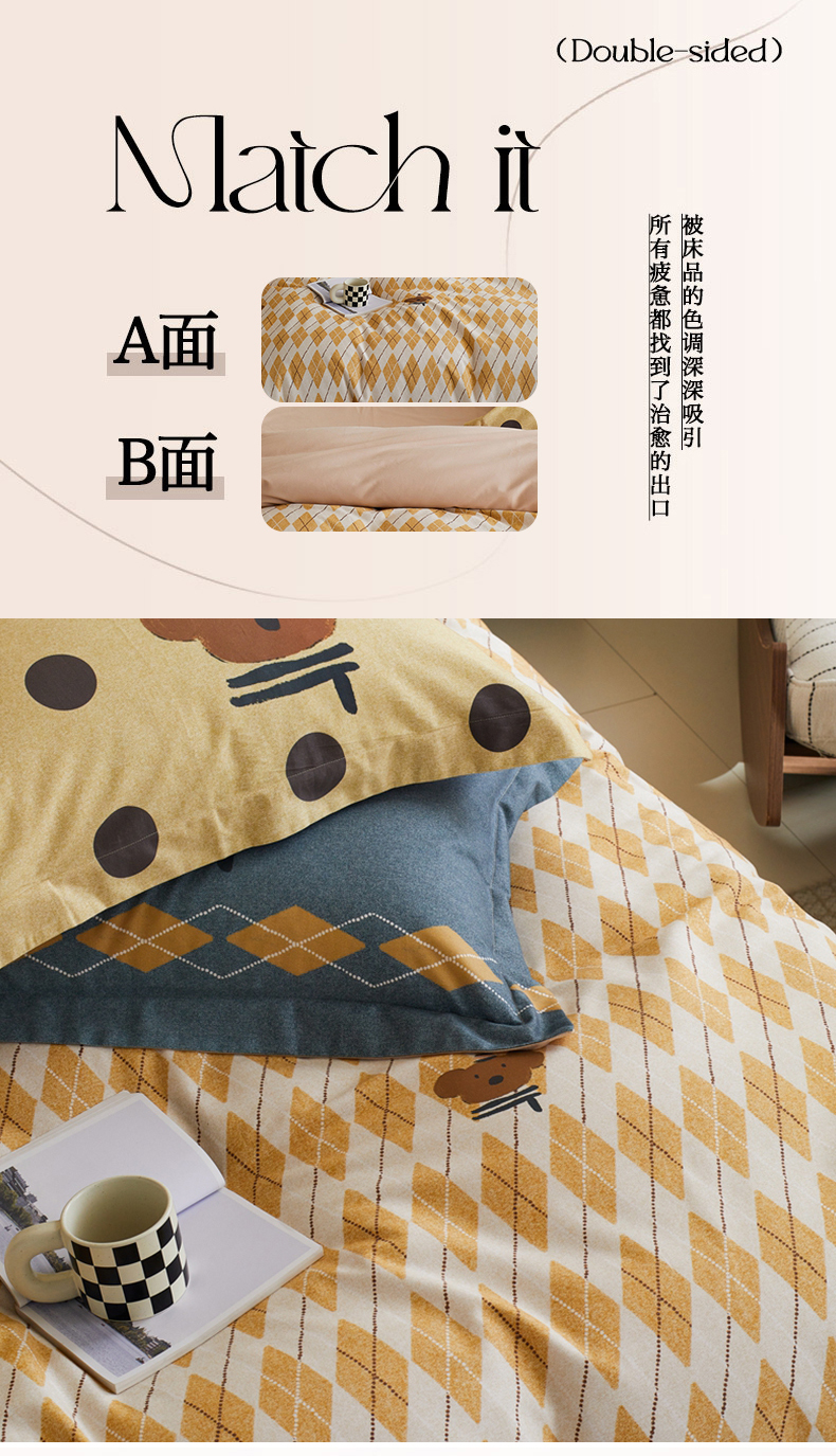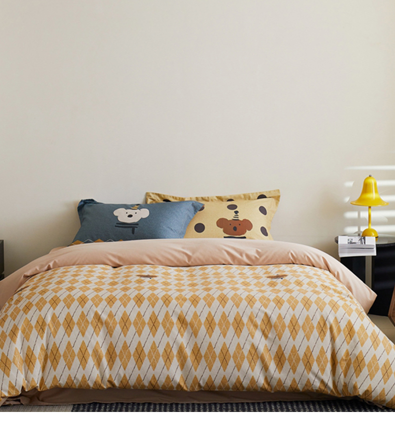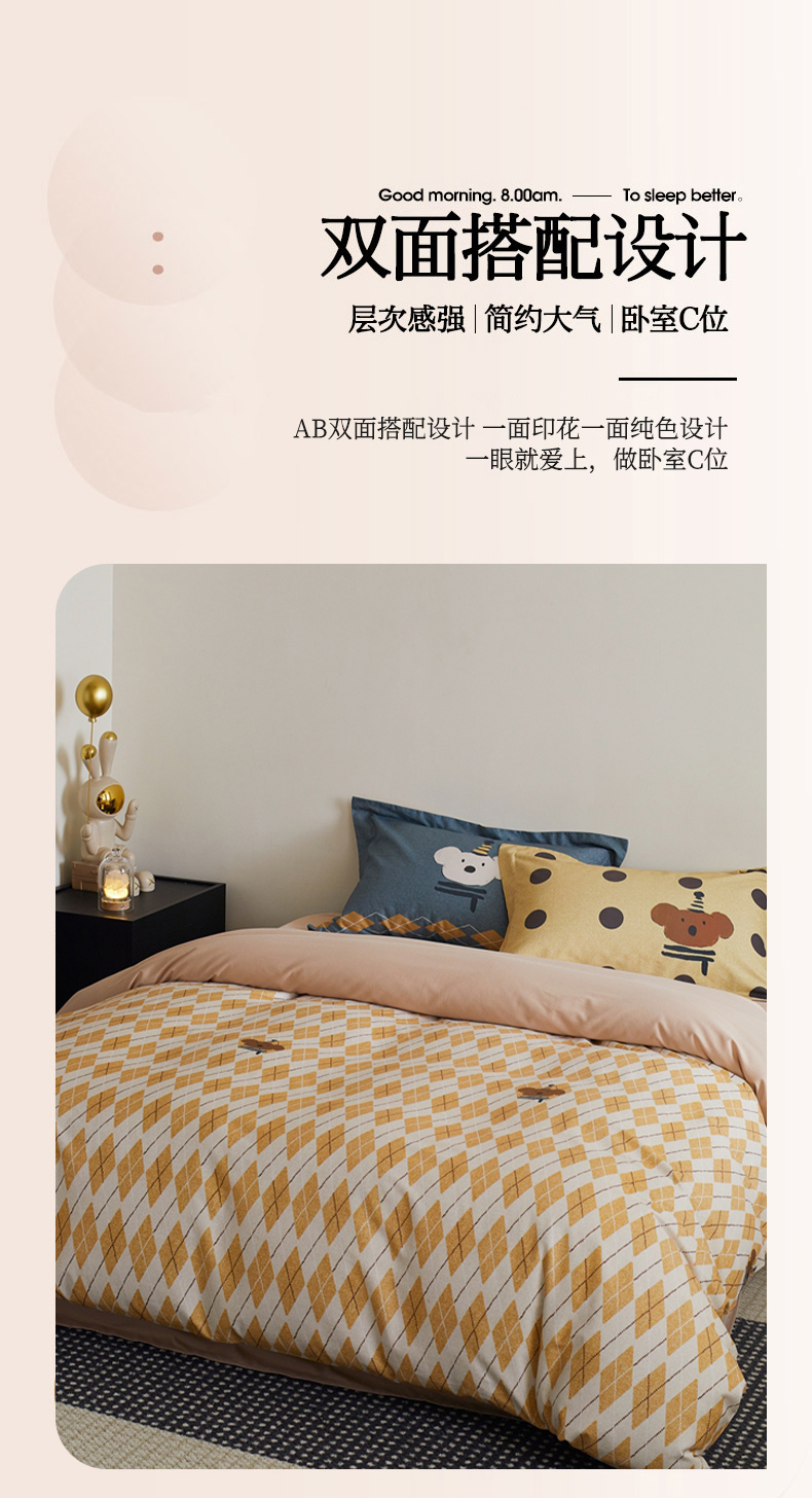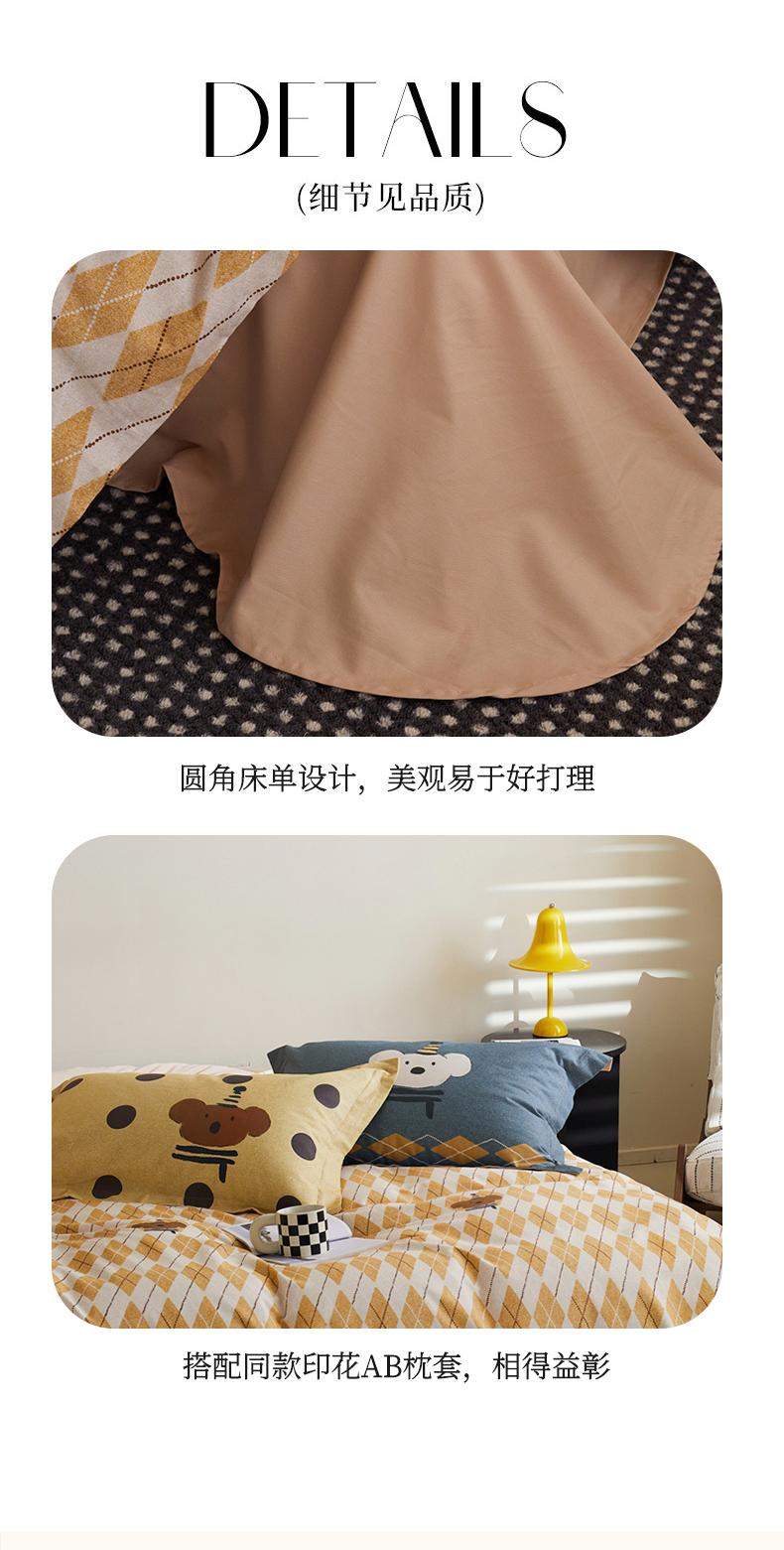 由丽2025新款卡通磨毛印花四件套(控价券后不低于小号190,标准210,加大225) 菱形熊-蓝