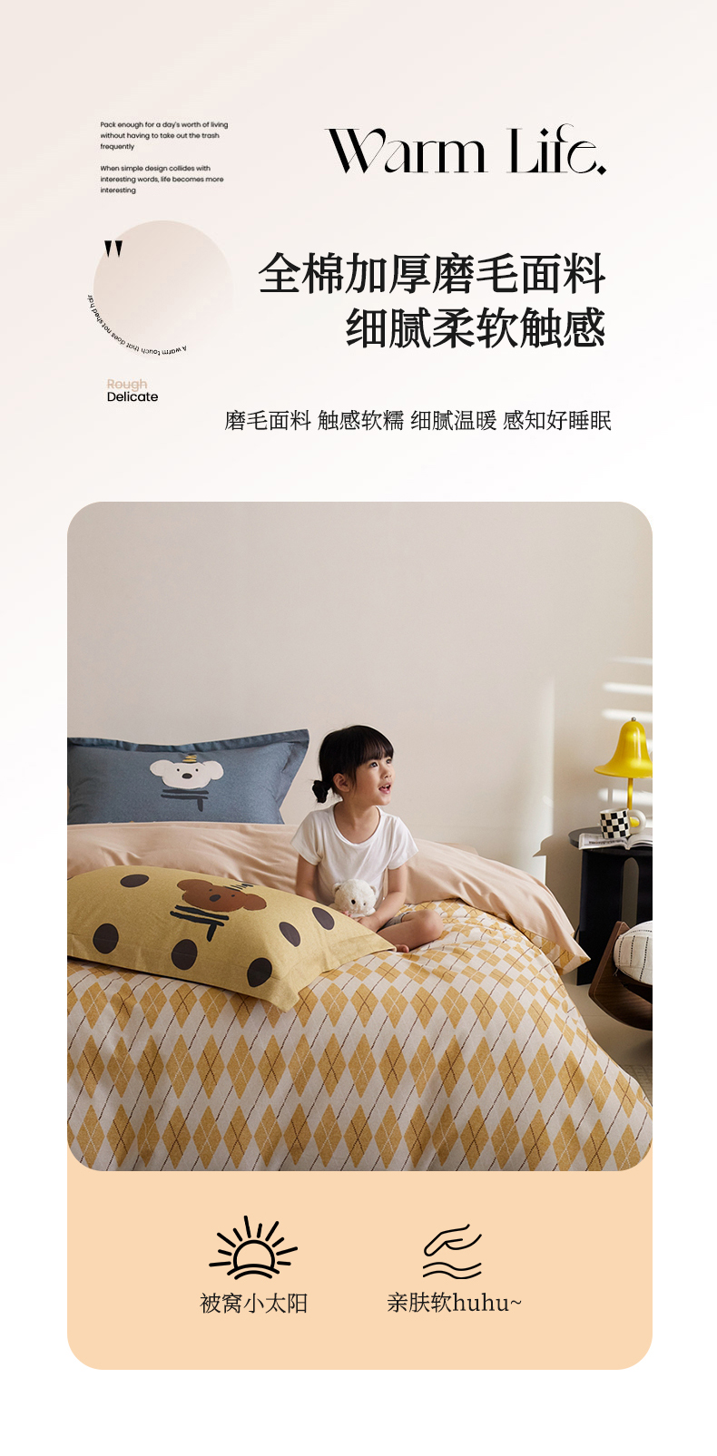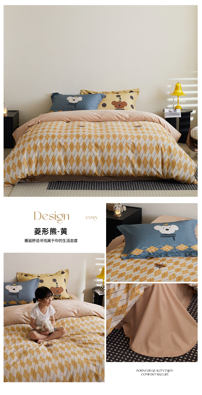 商品名称:由丽2025新款卡通磨毛印花四件套(控价券后不低于小号190,标准210,加大225) 菱形熊-蓝