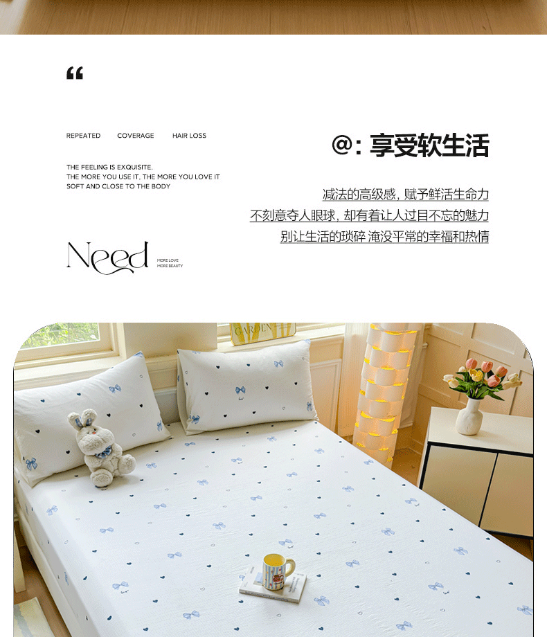 • 91家纺网 家纺一手货源 找家纺 眠多宝2025新款皱皱纱双层纱床笠三件套直播热款 蓝色蝴蝶结