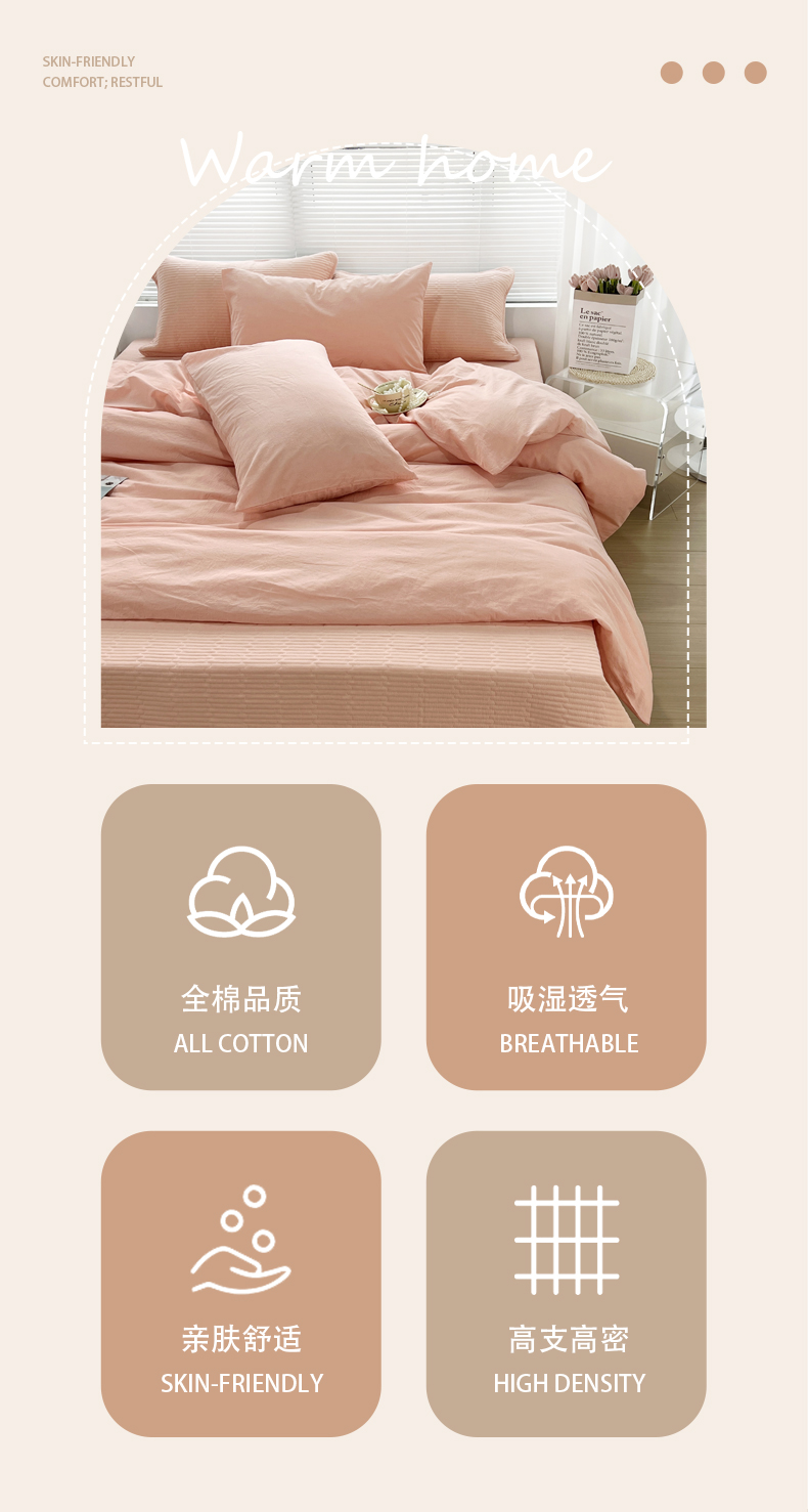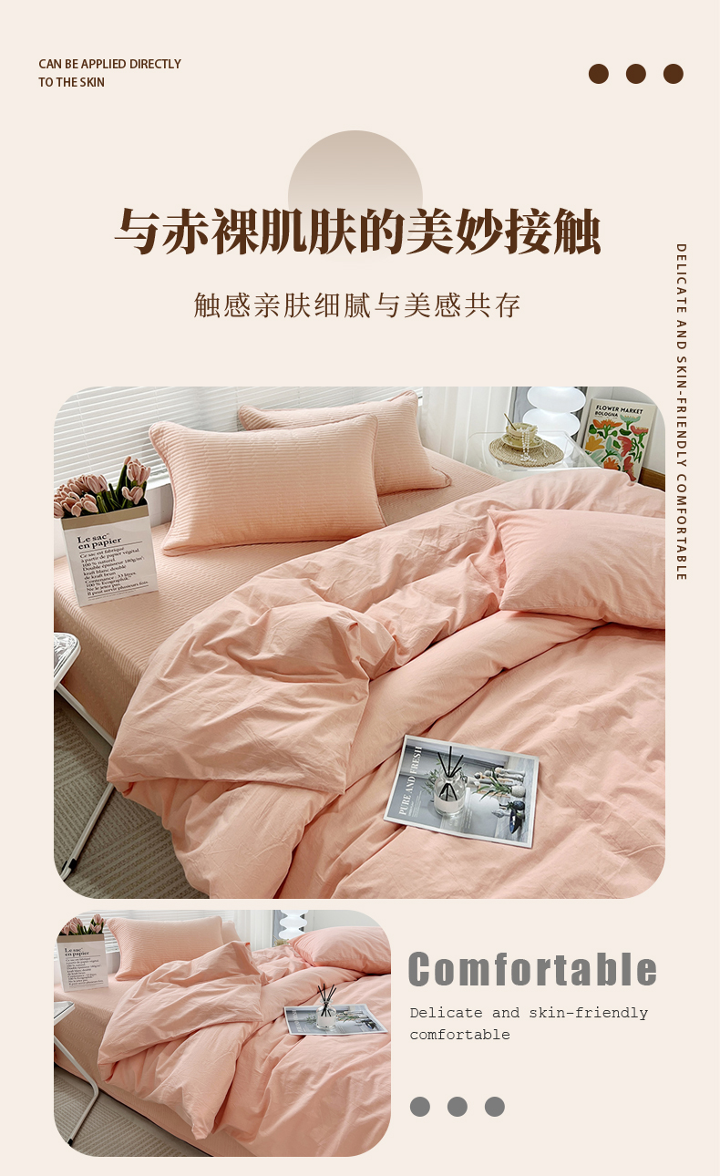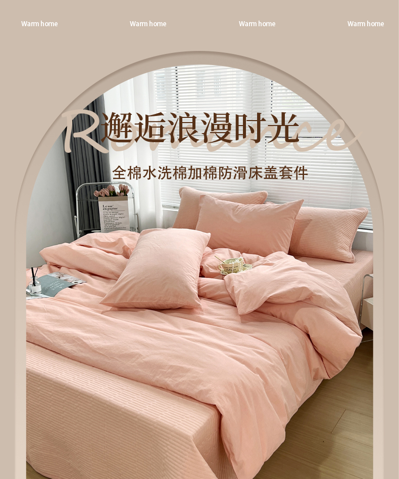 商品名称:(总)拾小柒 2025新款全棉色织水洗棉防滑夹棉床盖三四件套