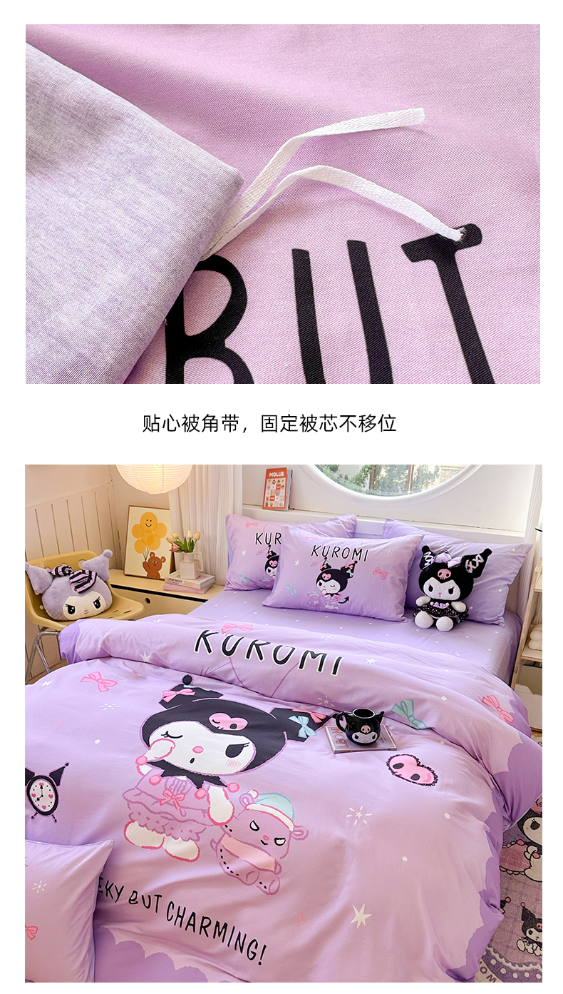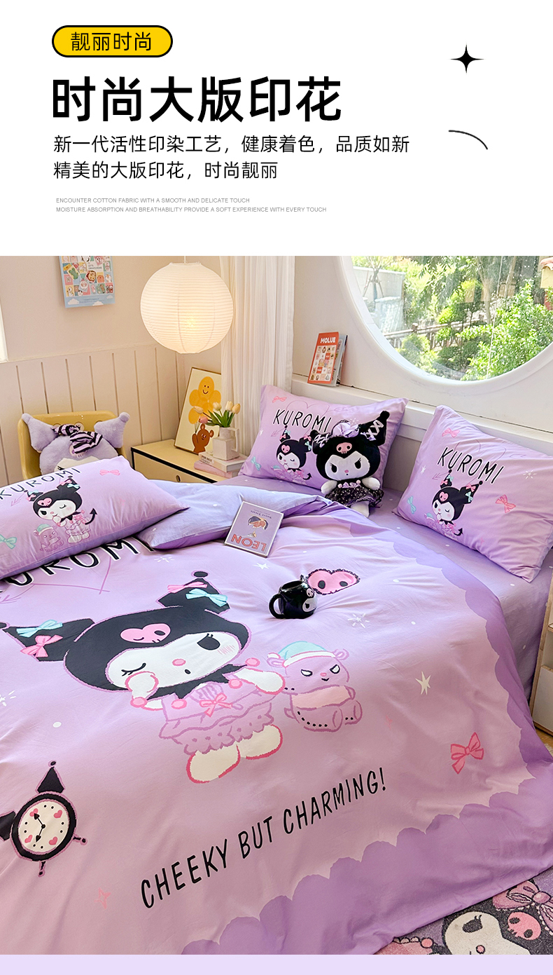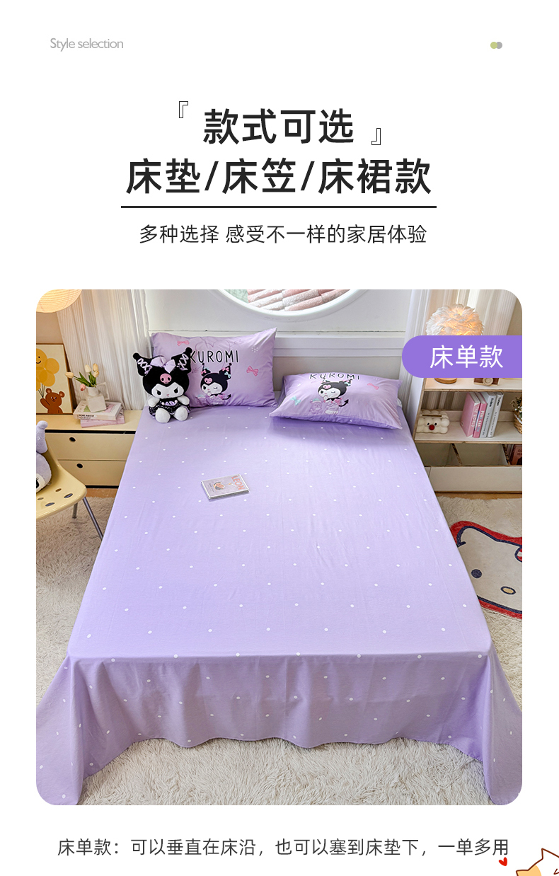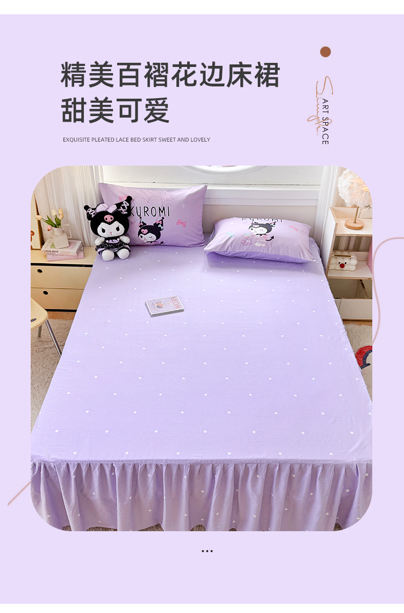 当前位置: 91家纺网 > 商品网购 > 床品套件 > 四件套 > 全棉普通四件套 > 玉元坊 2025新款大版三丽鸥系列全棉纯棉床单纯棉床裙三四件套简约款 巴库库洛米