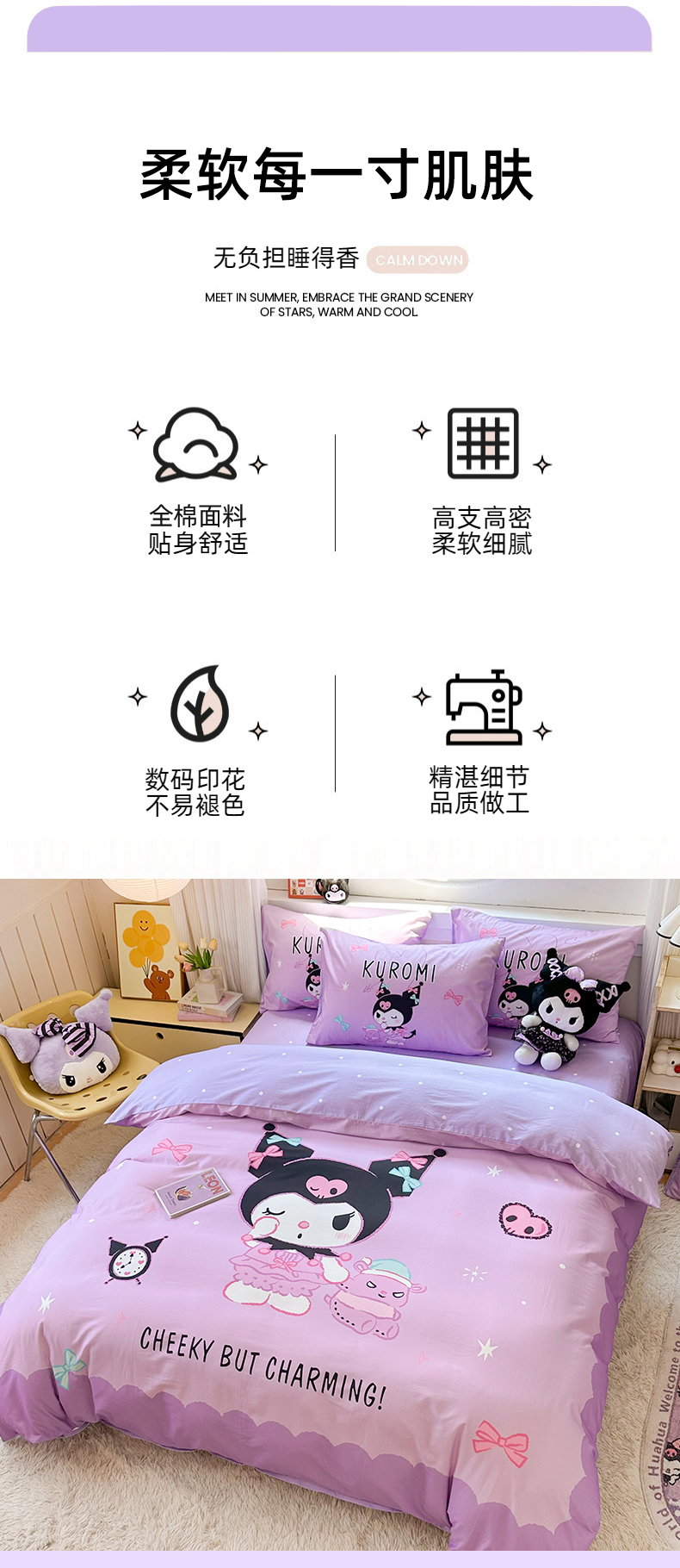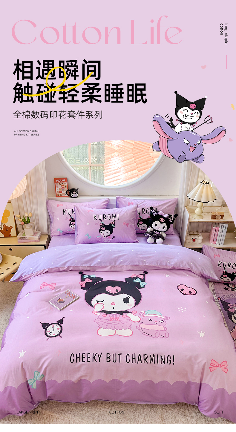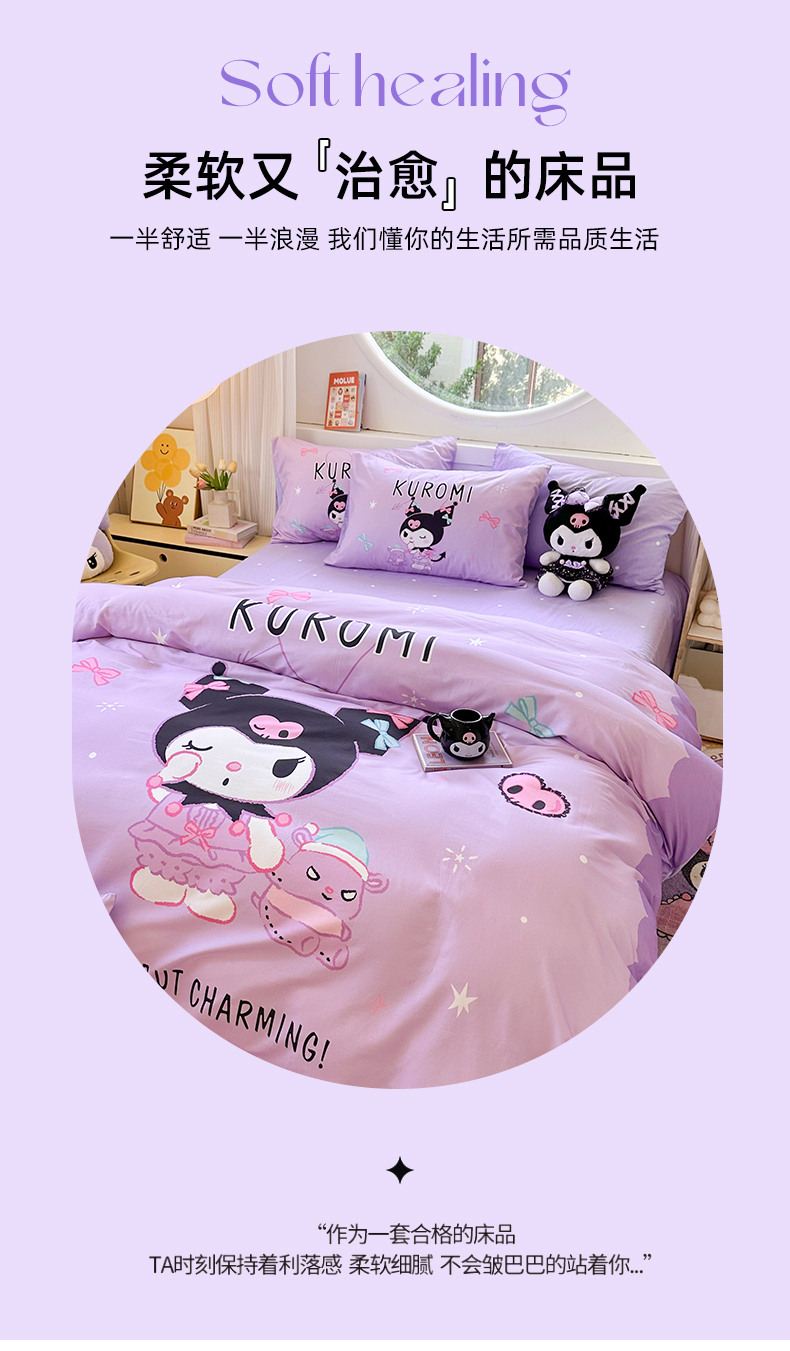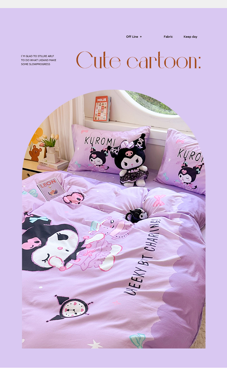 当前位置: 91家纺网 > 商品网购 > 床品套件 > 四件套 > 全棉普通四件套 > 玉元坊 2025新款大版三丽鸥系列全棉纯棉床单纯棉床裙三四件套简约款 巴库库洛米