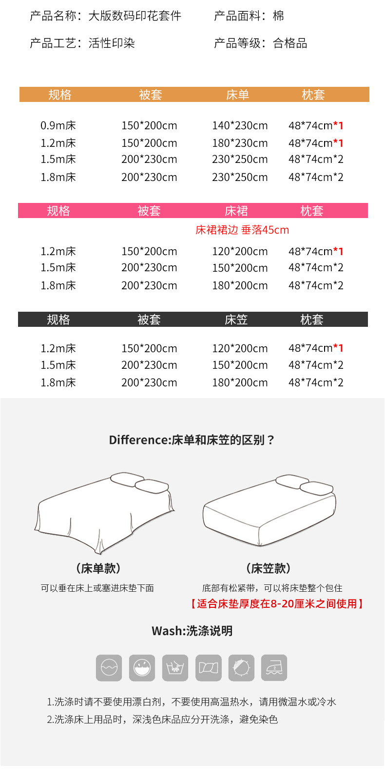 1.8m床 四件套 床裙款式 | ¥150.00 |
