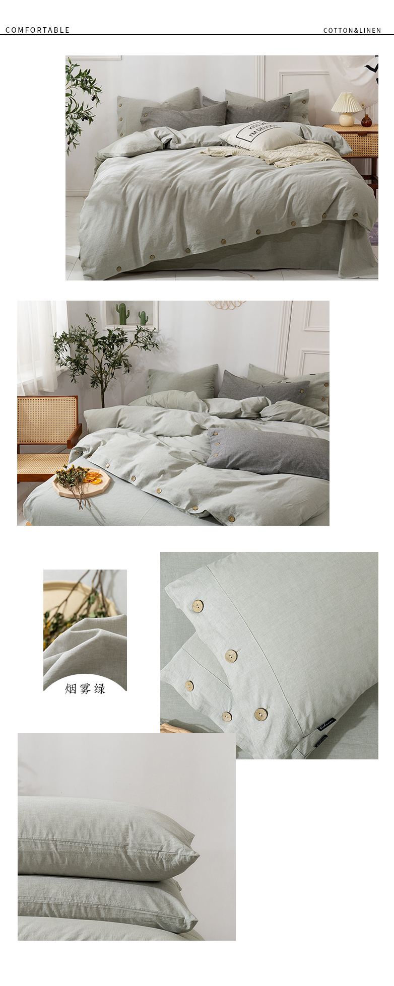 • 91家纺网 家纺一手货源 找家纺 贝尔 PELLHOME 比利时美日式纯色纽扣棉麻透气舒适亚麻北欧单枕套春节不打烊(可抖音代发) 牛仔蓝
