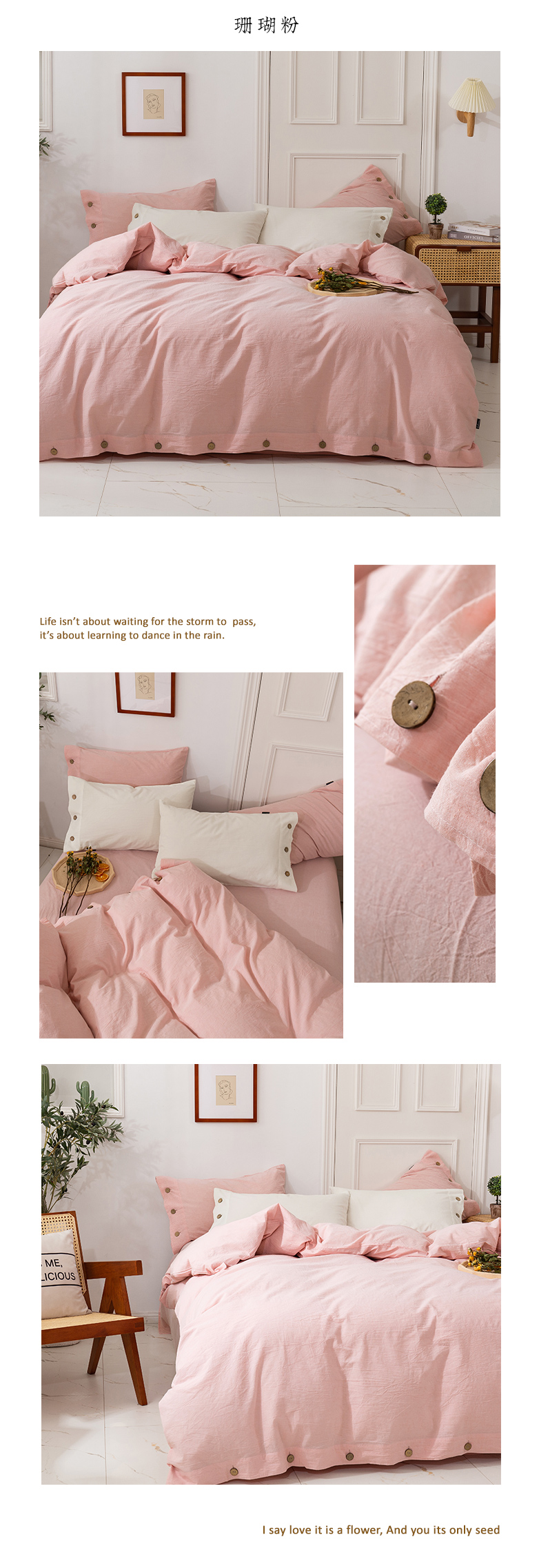 商品名称:贝尔 PELLHOME 简约复古风美日式纯素色纽扣棉麻透气舒适亚麻北欧单被套(可抖音代发) 珊瑚粉
