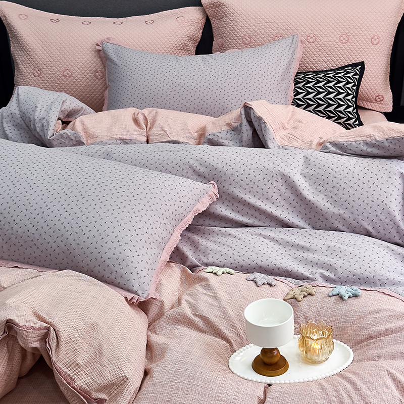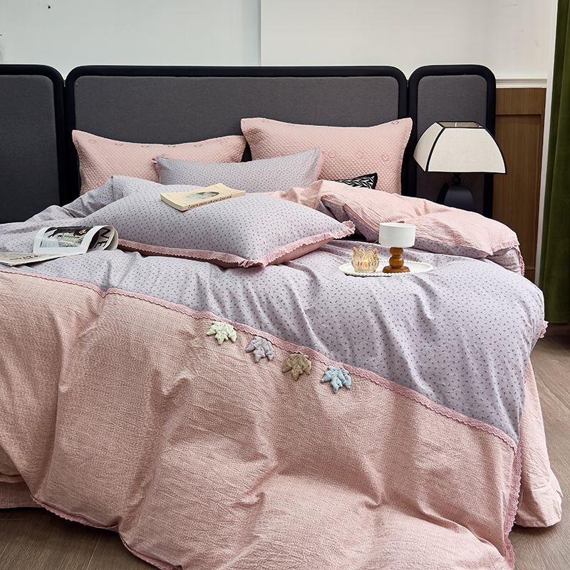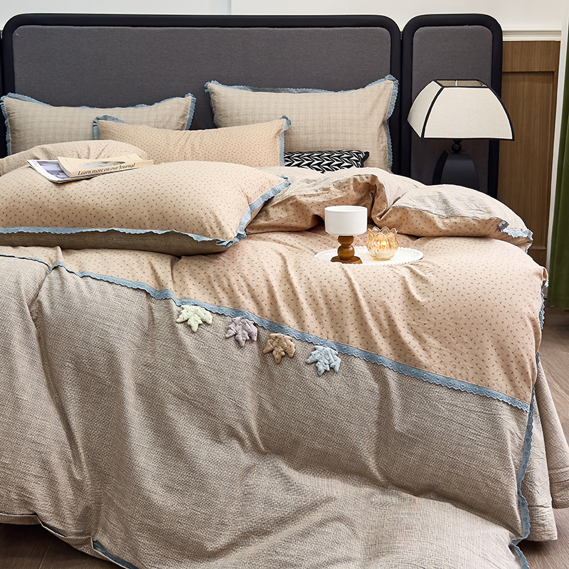 贝尔 2025新款urban classic枫叶全棉色织提花四件套-花边款 紫萱