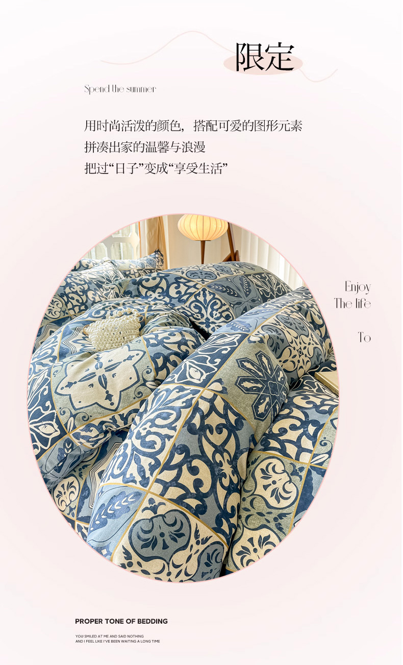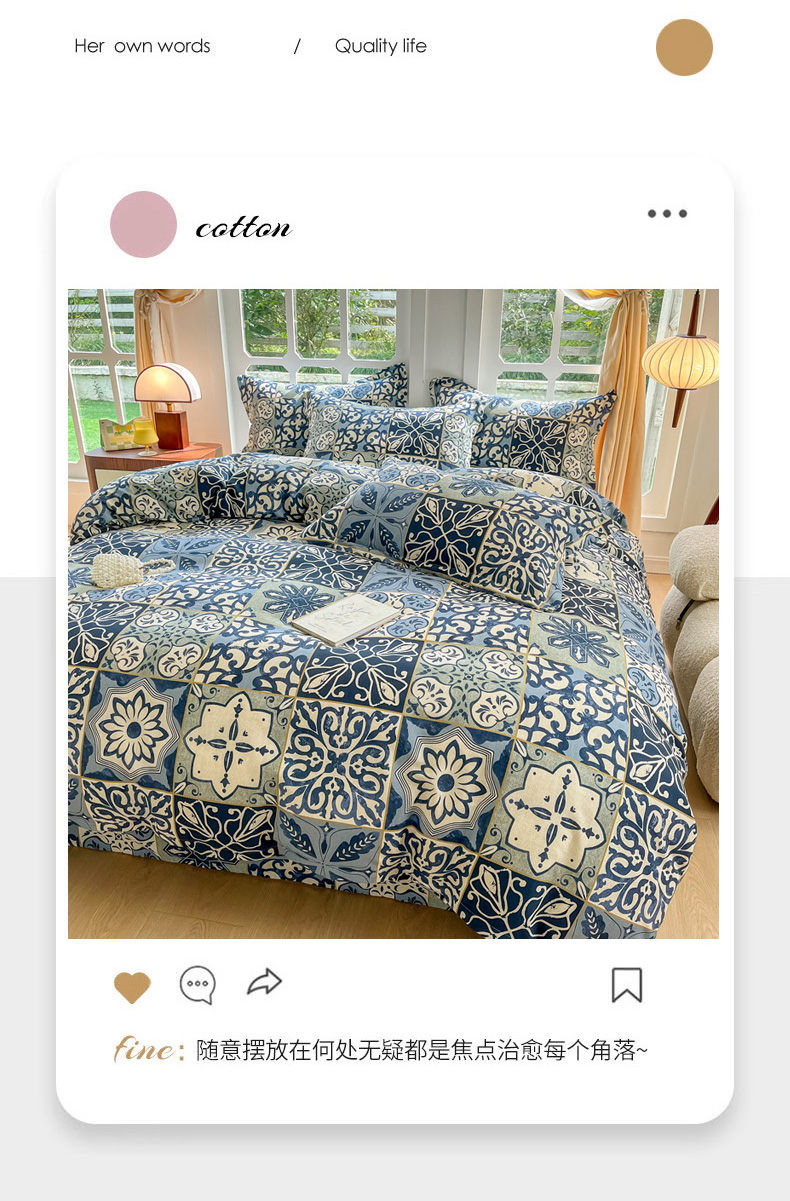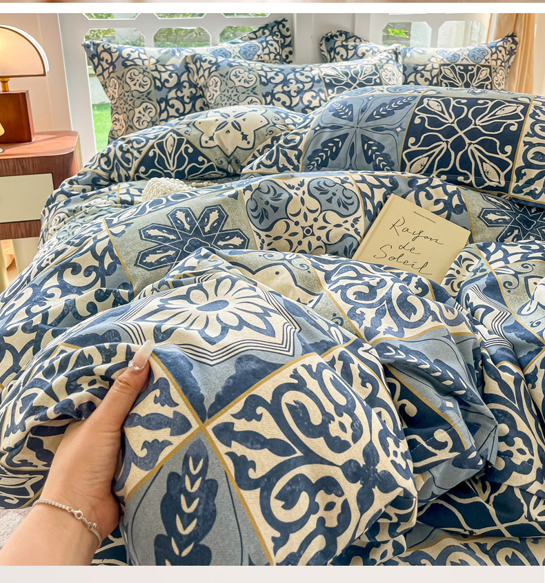 当前位置: 91家纺网 > 商品网购 > 床品套件 > 四件套 > 普通磨毛四件套 > 眠博士 2025新款全棉混纺生态磨毛印花四件套 磨毛四件套-浪漫蓝布