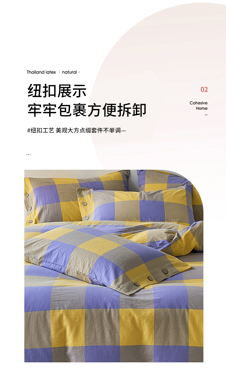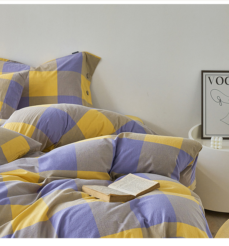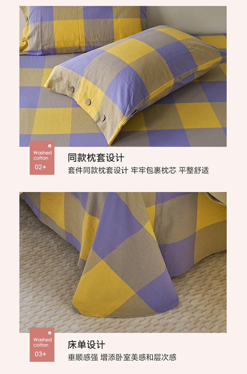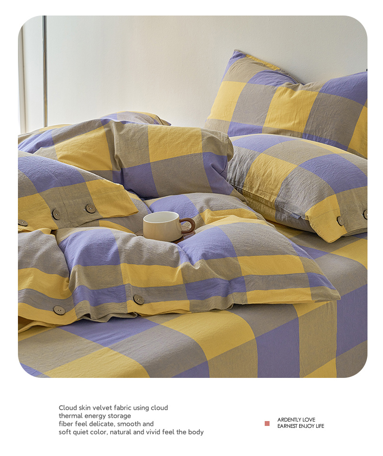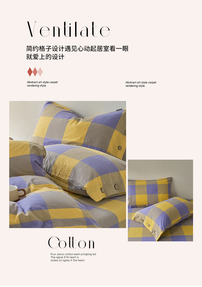 当前位置: 91家纺网 > 商品网购 > 床品套件 > 四件套 > 水洗棉四件套 > 贝尔 PELLHOME 全棉纽扣色织水洗棉格子四件套(可抖音代发) 紫咖大格