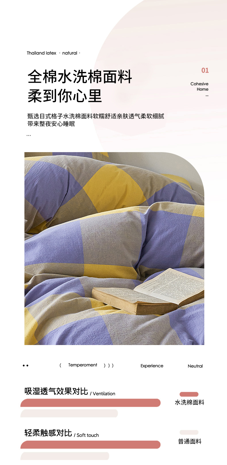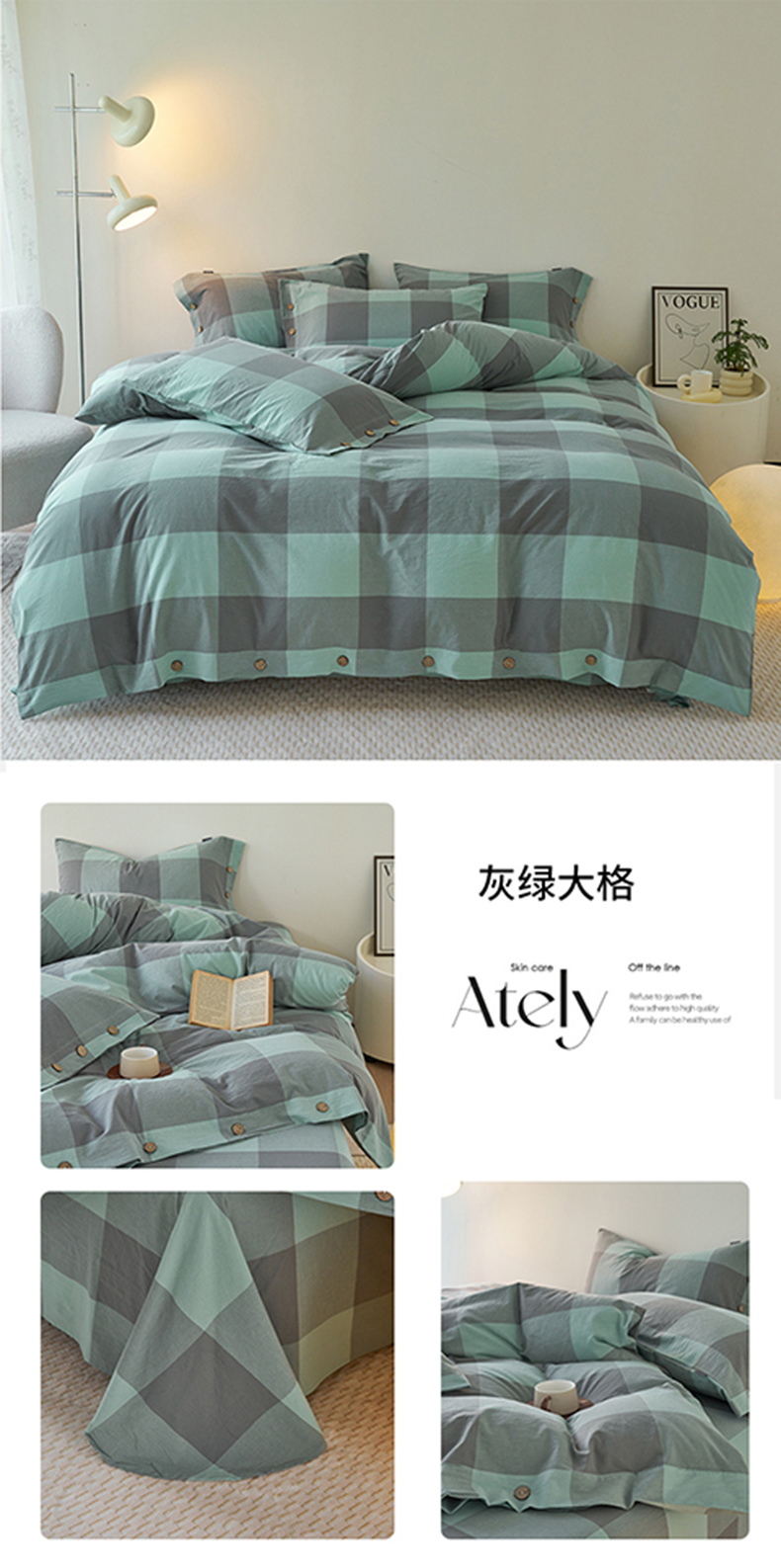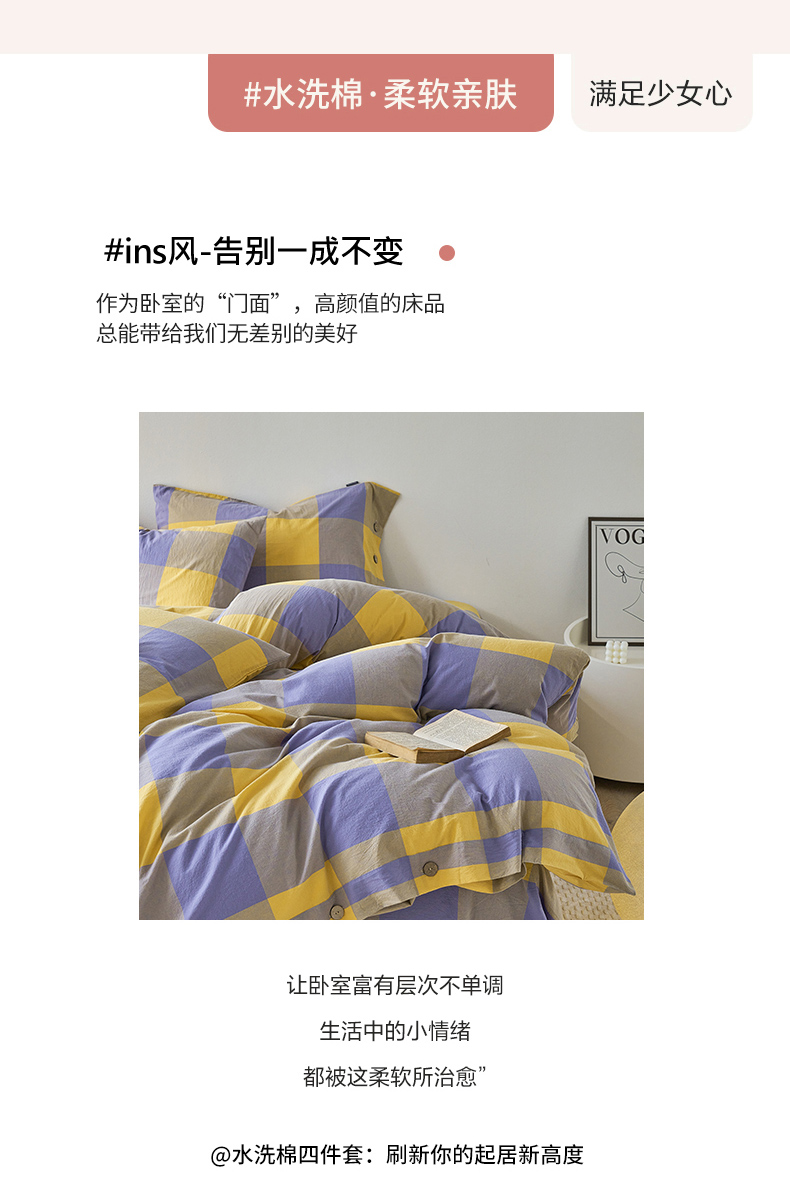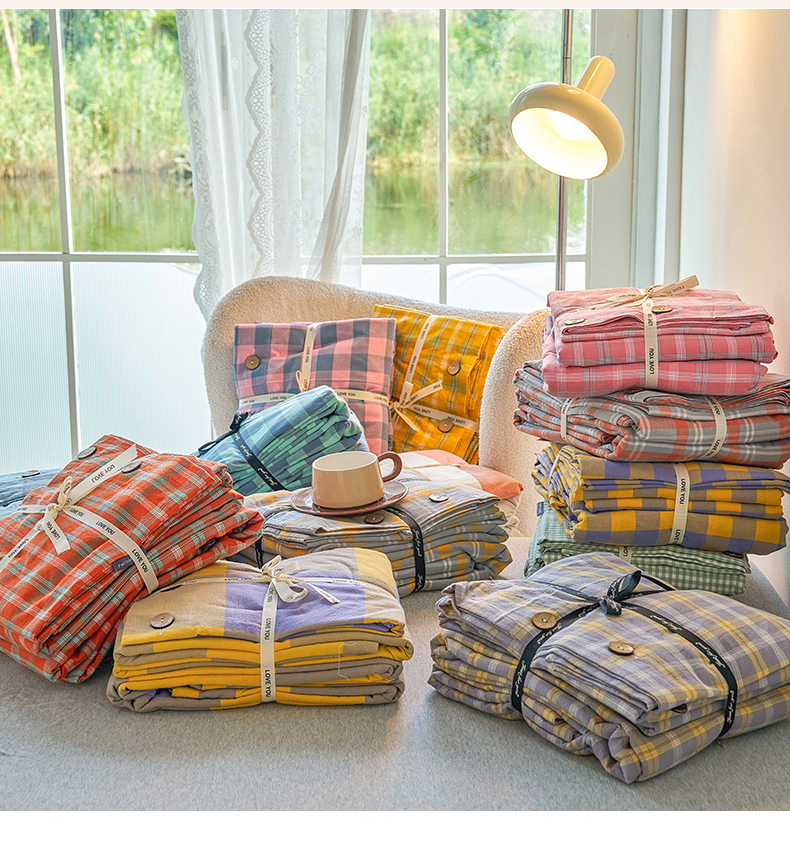 当前位置: 91家纺网 > 商品网购 > 床品套件 > 四件套 > 水洗棉四件套 > 贝尔 PELLHOME 全棉纽扣色织水洗棉格子四件套(可抖音代发) 紫咖大格