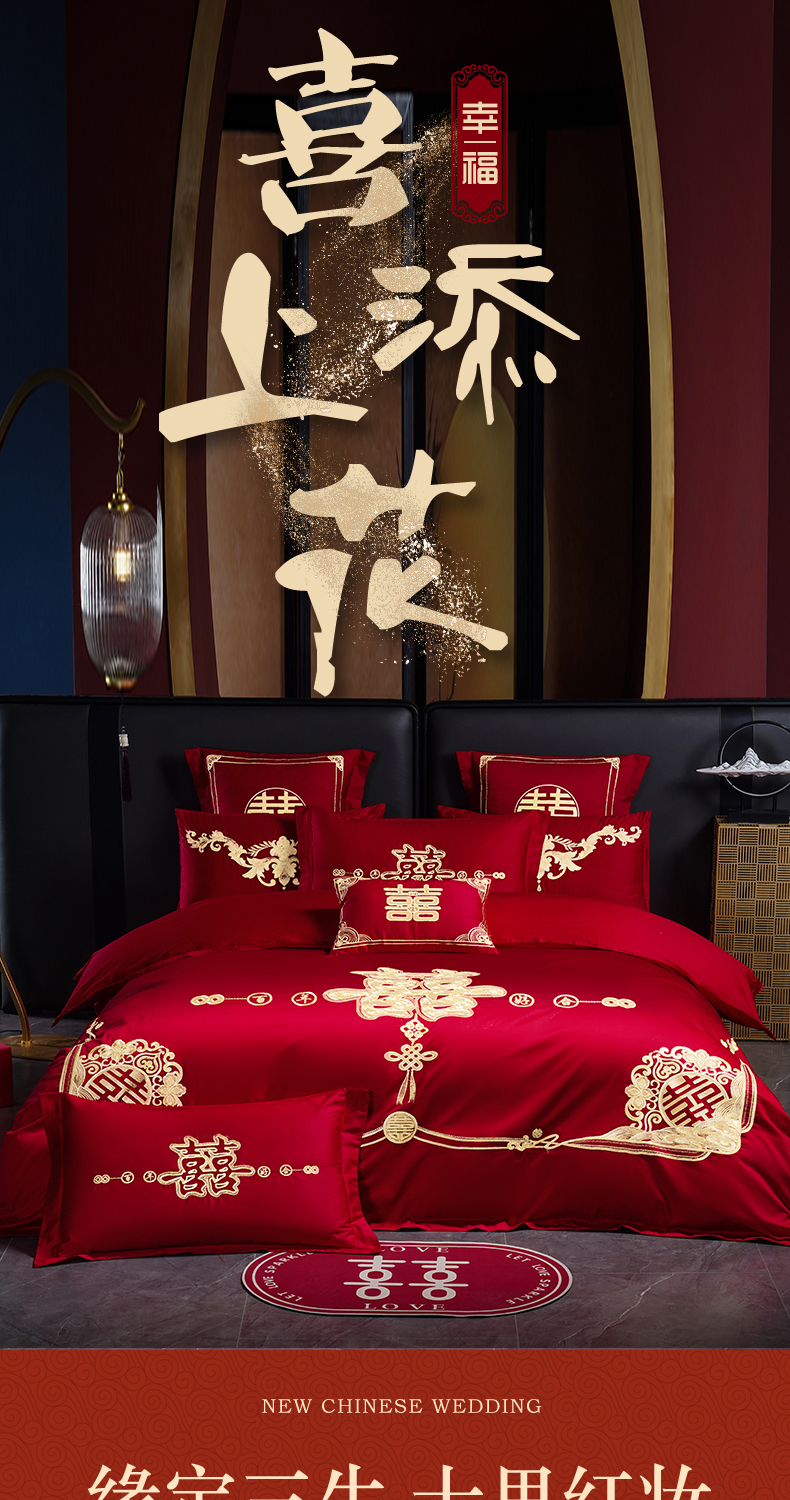 当前位置: 91家纺网 > 商品网购 > 床品套件 > 四件套 > 婚庆四件套 > 芊囍纺 2025新款全棉刺绣婚庆四件套 喜上添花