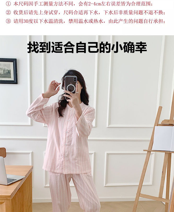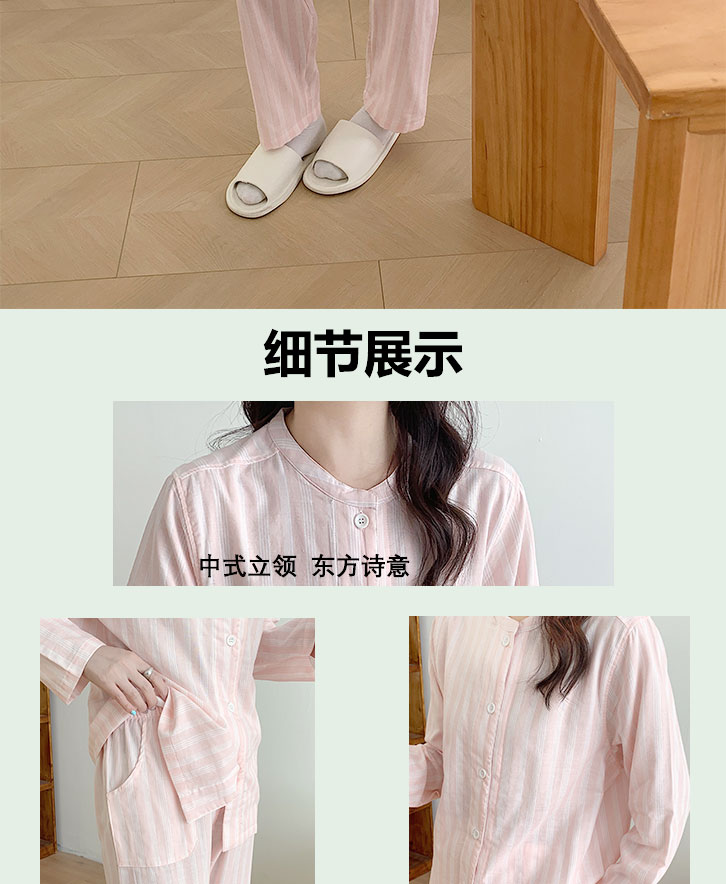商品名称:观月轩家纺 2025新款全棉纯棉60支双层纱系列家居服 女款-黄细条